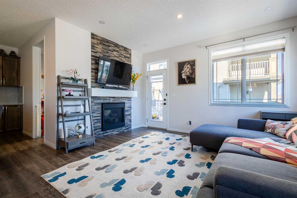 A main-floor office enjoys the glow of the dual-sided fireplace, creating a comfortable work-from-home environment. A functional mudroom provides access to the insulated, drywalled double attached garage, while the large driveway offers excellent additional parking—an added benefit of this corner unit.