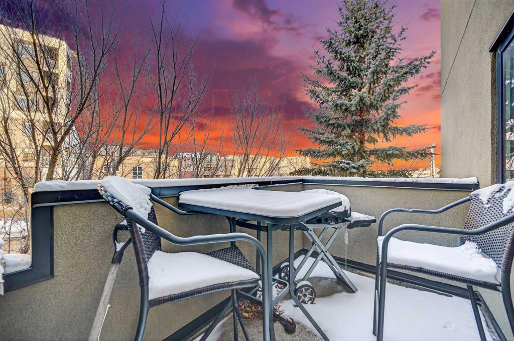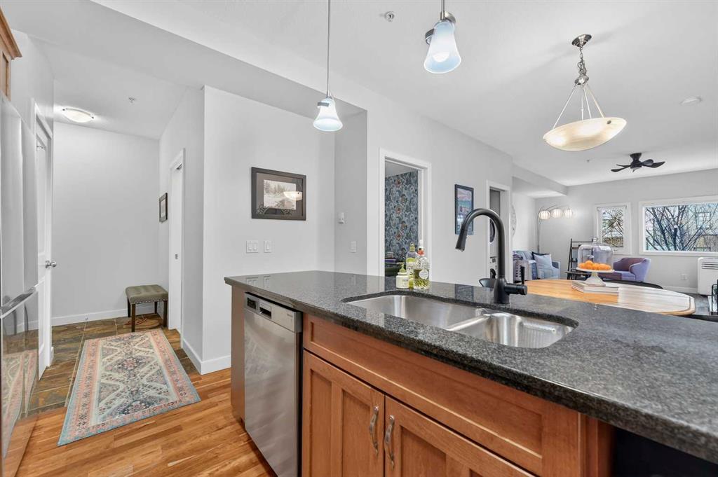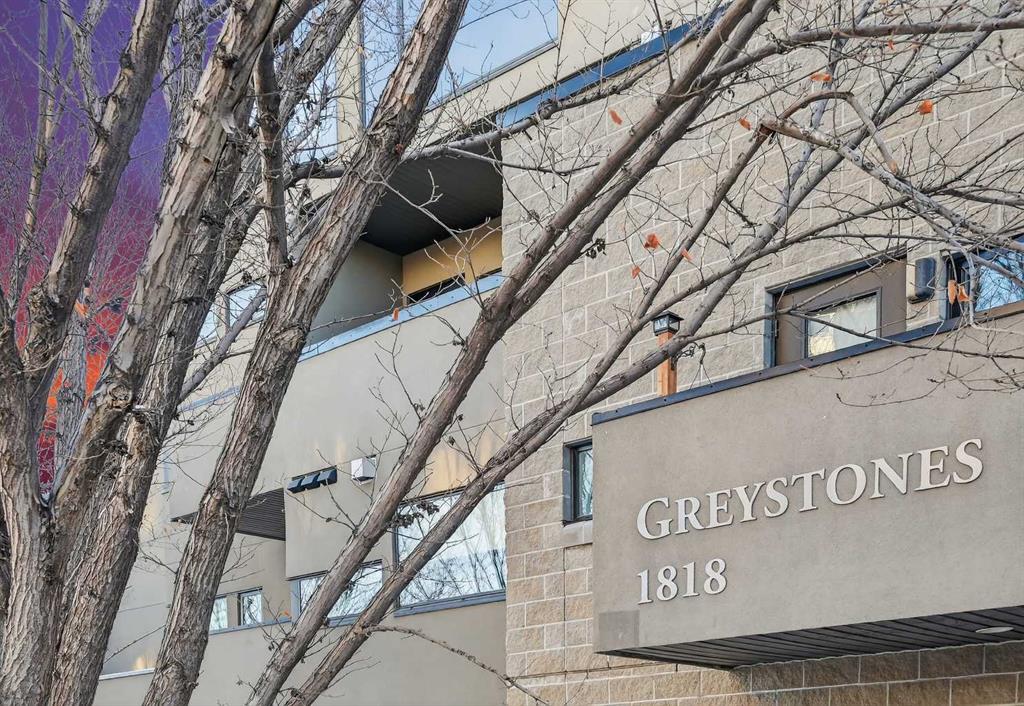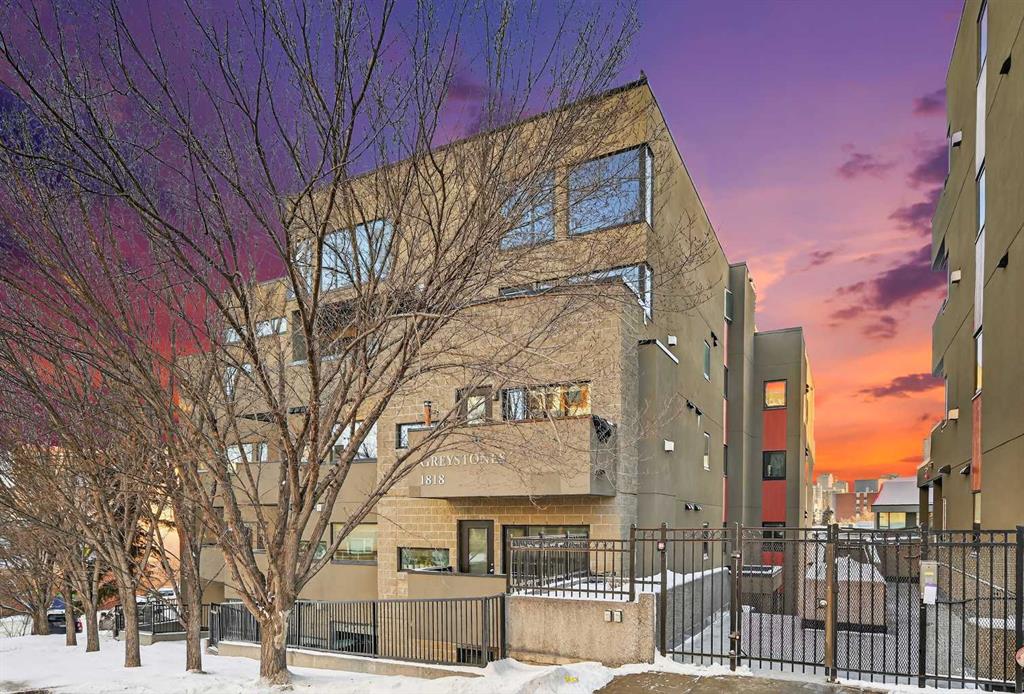 Welcome to The Greystones, a timeless and highly sought-after residence nestled in the heart of Lower Mount Royal, one of Calgary’s most desirable inner-city neighborhoods. Just steps from vibrant 17th Avenue SW, this exceptional location places you at the centre of it all. Enjoy world-class dining, boutique cafés, charming shops, green spaces, schools, and effortless access to public transportation, all right outside your door. This beautifully appointed 1 bedroom plus den, 1.5 bathroom home is located on the third floor and showcases a thoughtfully designed open-concept layout filled with warm west-facing natural light throughout the day. From the moment you enter, you’ll appreciate the sense of space, comfort, and quality. The kitchen is both elegant and functional, featuring granite countertops, stainless steel appliances, a gas range, and rich cabinetry that flows seamlessly into a spacious dining area. Just off the kitchen, the dedicated den offers the perfect space for a home office, reading nook, or creative studio, ideal for today’s work-from-home lifestyle.