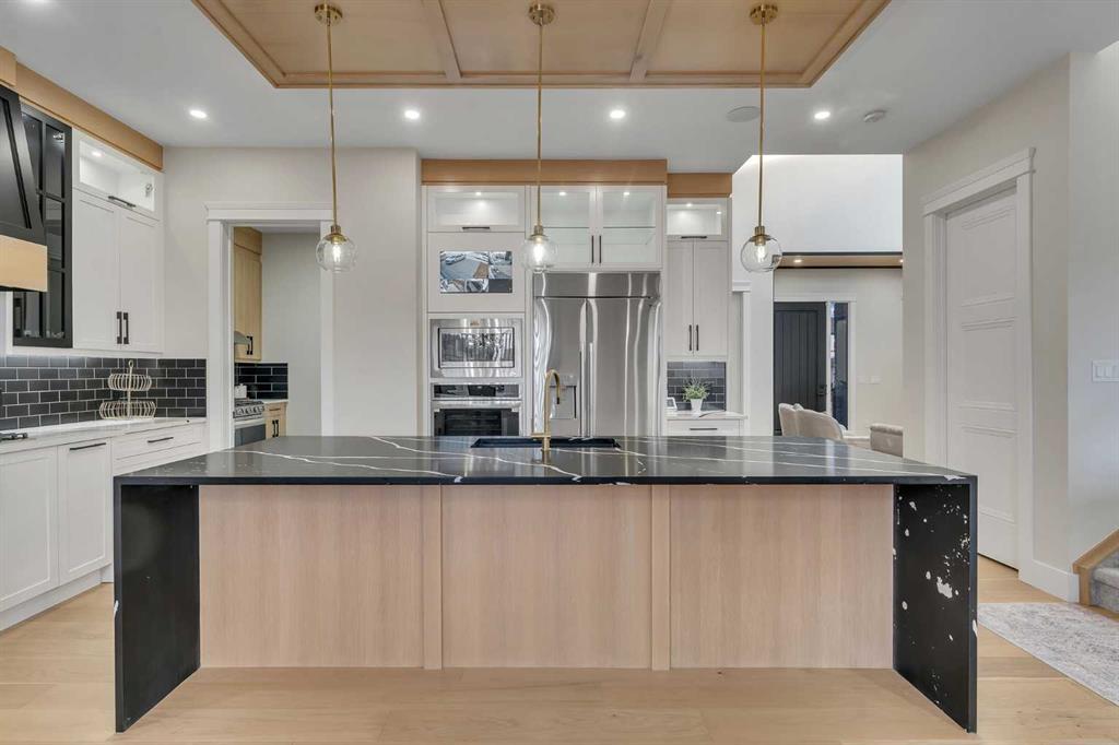 built-in features, ceiling fan(s), crown molding, double vanity, high ceilings, kitchen island, no animal home, no smoking home, open floorplan, pantry, separate entrance, tray ceiling(s), vaulted ceiling(s), walk-in closet(s), wired for data, wired for sound