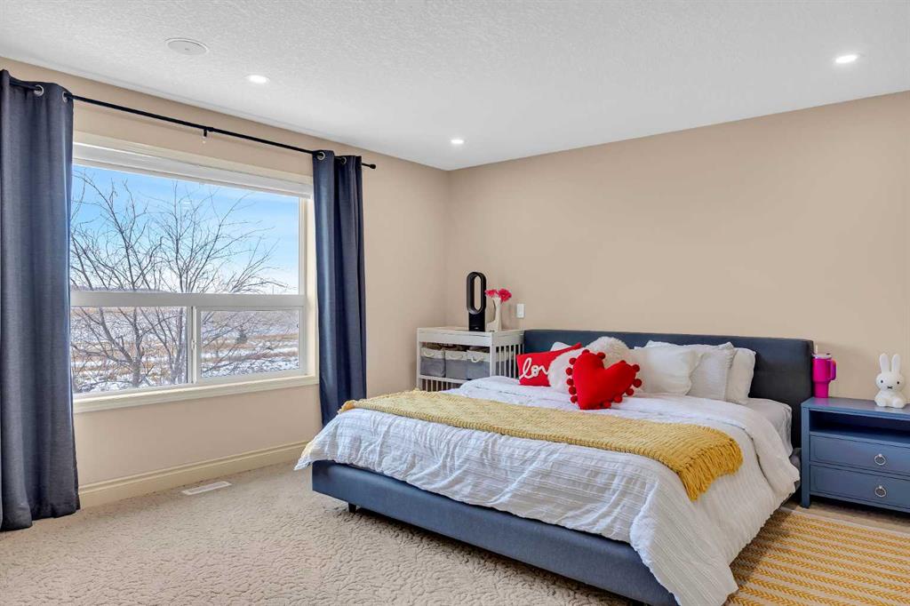 Backing onto the ridge on a quiet, no-through street, this well-appointed Cougar Ridge home offers over 4,000 sqft of comfortable, thoughtfully planned living space in a highly desirable west Calgary location. With no neighbours behind and open mountain and sunset views, the setting provides privacy and a calm, residential feel. The exterior presents strong curb appeal with a welcoming front porch, extended driveway, and oversized, fully finished attached garage. Inside, a tiled foyer and curved staircase introduce a layout designed for both everyday living and entertaining. The formal living room offers flexible use as a sitting or music room, while the kitchen is defined by maple cabinetry, detailed millwork, extended granite countertops, and a raised breakfast bar. A five-burner gas cooktop, built-in ovens, wine storage, and corner pantry support both functionality and convenience. The breakfast nook, surrounded by windows, opens to the rear deck with BBQ gas line, creating an easy connection to the outdoors. A formal dining room provides space for larger gatherings, while the main floor family room features custom built-ins and a gas fireplace. Upstairs, three spacious bedrooms are complemented by an additional family room. The primary suite includes a walk-in closet and a well-appointed six-piece ensuite with dual vanities, make-up area, oversized shower with dual heads, corner soaker tub, and bidet. The fully developed basement adds a large recreation room with fireplace and stone wet bar, suitable for movie nights, casual entertaining or home gym. One additional bedroom, one multi-purpose den and a full bathroom with steam shower complete this level. Located steps from Waldorf School and close to public and private schools, WinSport, West 85 shopping, Westside Recreation Centre, and Aspen Woods amenities, this home offers a practical layout, quality finishes, and a location that continues to hold long-term value.