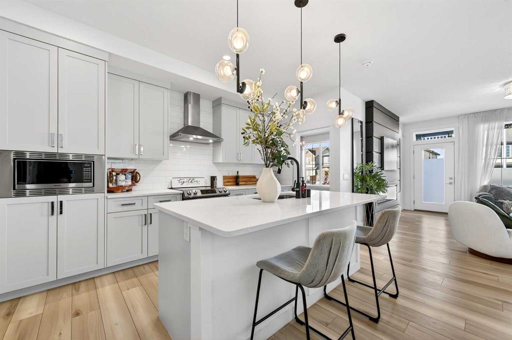 Nestled on a quiet street, this pristine semi detached bungalow villa offers the perfect blend of luxury, convenience, and maintenance free living without sacrificing space or style. The open concept main floor is anchored by an expansive great room featuring a cozy fireplace and large windows that flood the space with natural light, making it equally suited for quiet evenings or entertaining. The stunning chef’s kitchen impresses with a large island and eating bar, quartz countertops, stainless steel appliances, and an abundance of cabinetry and counter space. A generously sized walk in pantry with oversized doors adds both style and practicality. Just off the double attached garage, a functional mudroom with built-in storage also houses the main floor laundry and a convenient two piece powder room, thoughtfully designed for everyday living. The primary suite is a true retreat, ideally positioned to face the peaceful green space, and features a spa inspired ensuite with a freestanding tub, dual vanities, and a walk in closet. The partially finished basement is the perfect extension of your living area, complete with two additional bedrooms and a 4 piece bathroom. Minimal work remains to complete the basement, with only flooring, baseboards, and window casings left to finish. Outside, enjoy your beautifully landscaped yard with a rear lane double attached garage for easy access. And the best part? No condo fees. Living in Walden means nature at your doorstep, with picturesque walking trails, parks, and green spaces just steps away. Plus, you are only minutes from top rated schools, shopping, dining, golf, and major commuter routes. This is a rare opportunity to own a hard to find executive bungalow villa in a prime location.