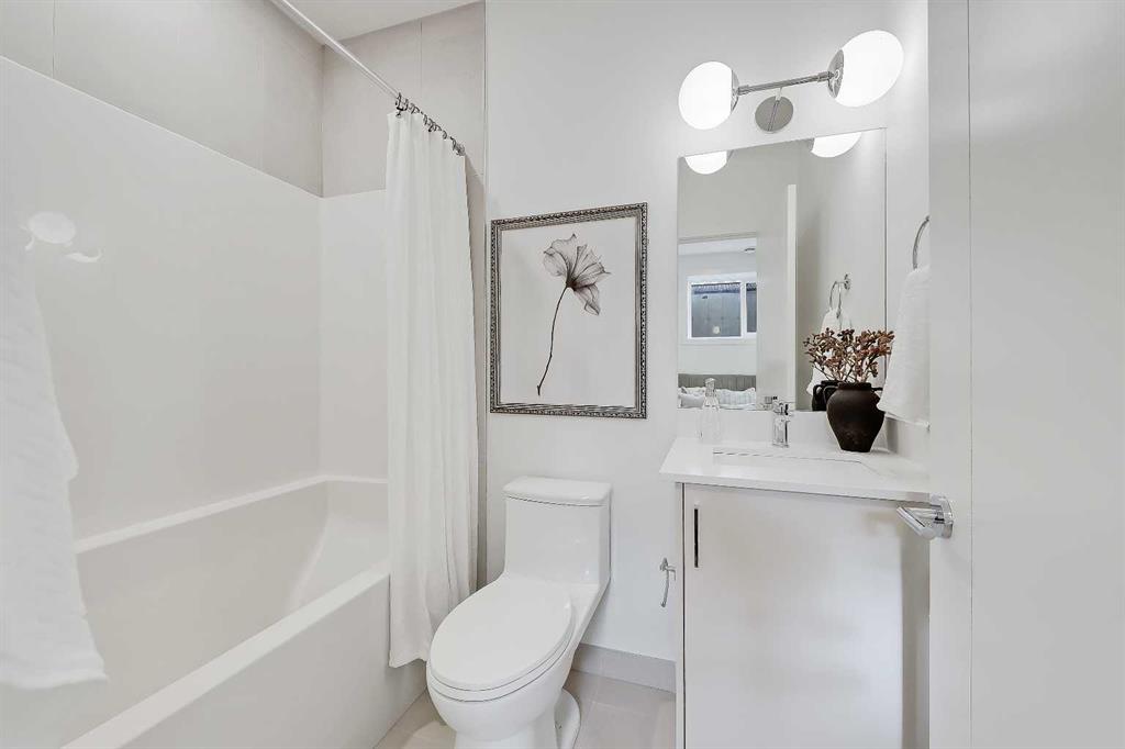*VISIT MULTIMEDIA LINK FOR FULL DETAILS & FLOORPLANS!* BRAND NEW, MOVE-IN-READY TOWNHOME PROJECT FOR SALE IN RENFREW! Presenting this lower-level unit boasting a sunny main floor plus a FULLY FINISHED BASEMENT totalling over 900 sq ft of developed living space, with 2 beds & 2.5 baths. The main floor showcases luxury vinyl plank flooring, and an open-concept layout with a central kitchen boasting 2-tone slab-style cabinetry, tiled backsplash, quartz countertops, a central island with bar seating, and stainless steel Samsung appliances, including a French-door refrigerator and ceramic top stove. The adjoining living and dining areas provide a comfortable setting for meals or unwinding after a long day, while a stylish 2-piece powder room completes the main level. Downstairs, 2 spacious bedrooms, each with a 4-piece ensuite, await. Both bathrooms feature tiled flooring, quartz vanities, and a tub/shower combo. Completing this lower level is a laundry closet with a stacked washer/dryer. Stylish and durable, the exterior features Hardie Board and Smart Board detailing, as well as brushed concrete steps and walks. Located in the heart of Renfrew, a tranquil inner-city community filled with tree-lined streets and green spaces. Enjoy being steps from ample parks, playing fields, and the Renfrew Community Association, which includes a playground and seasonal ice rink. Plus, enjoy being just minutes from the vibrant dining and shopping scene of neighbouring Bridgeland, and offering quick access to Calgary’s downtown core and major roadways, this townhome project blends inner-city convenience with the ease of a lock-and-leave lifestyle. *Interior photos are of the show home (unit #1). Schedule your private showing today!