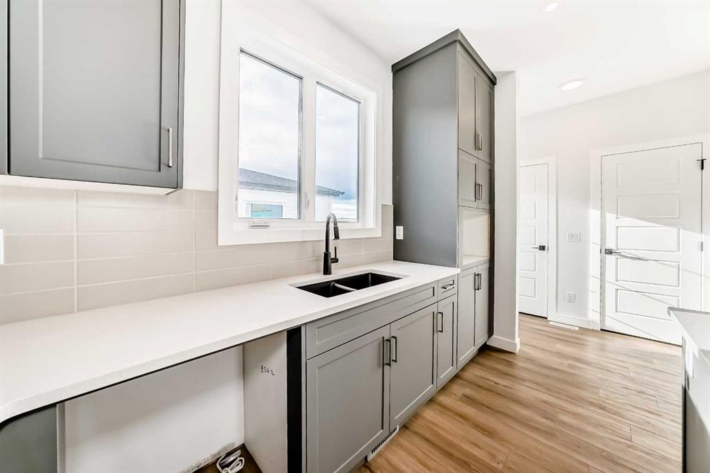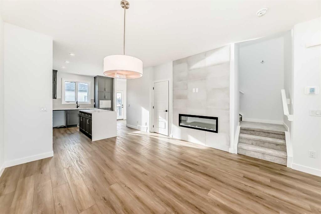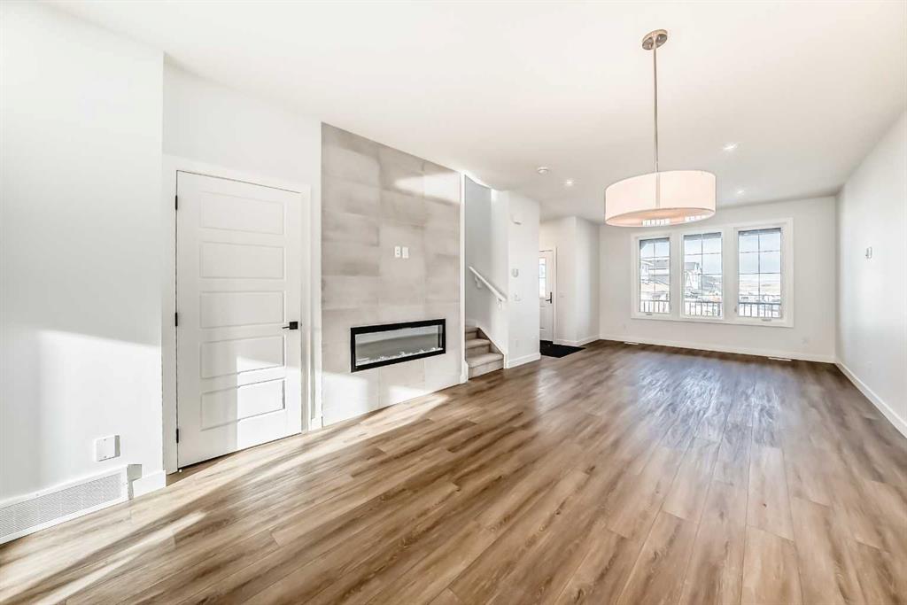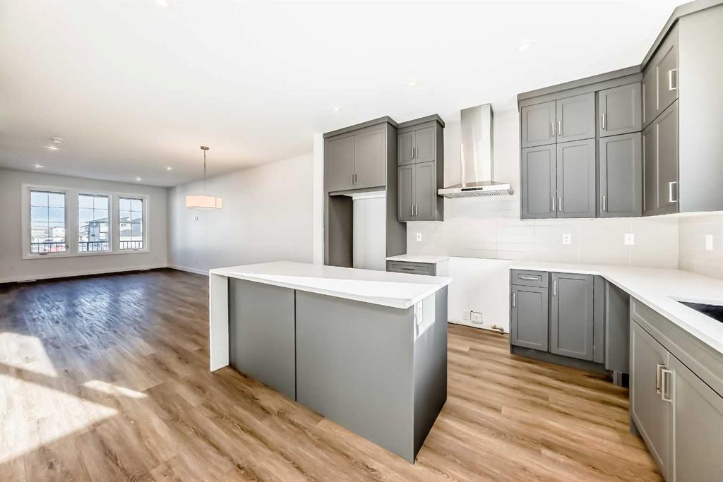 Bright, modern, and thoughtfully designed, this 1,698 sq ft Broadview Homes duplex in Harmony offers a well-balanced layout suited for both everyday living and entertaining. The open-concept main floor brings together the kitchen, dining, and living areas, creating a functional and inviting space filled with natural light. The kitchen features sleek grey cabinetry, light quartz countertops, and a complete stainless-steel appliance package including a gas range, dishwasher, hood fan, and built-in microwave. Clean lines and quality finishes carry throughout the home for a timeless, contemporary feel. Outside, enjoy a spacious rear deck and the convenience of a 20x20 double detached garage.