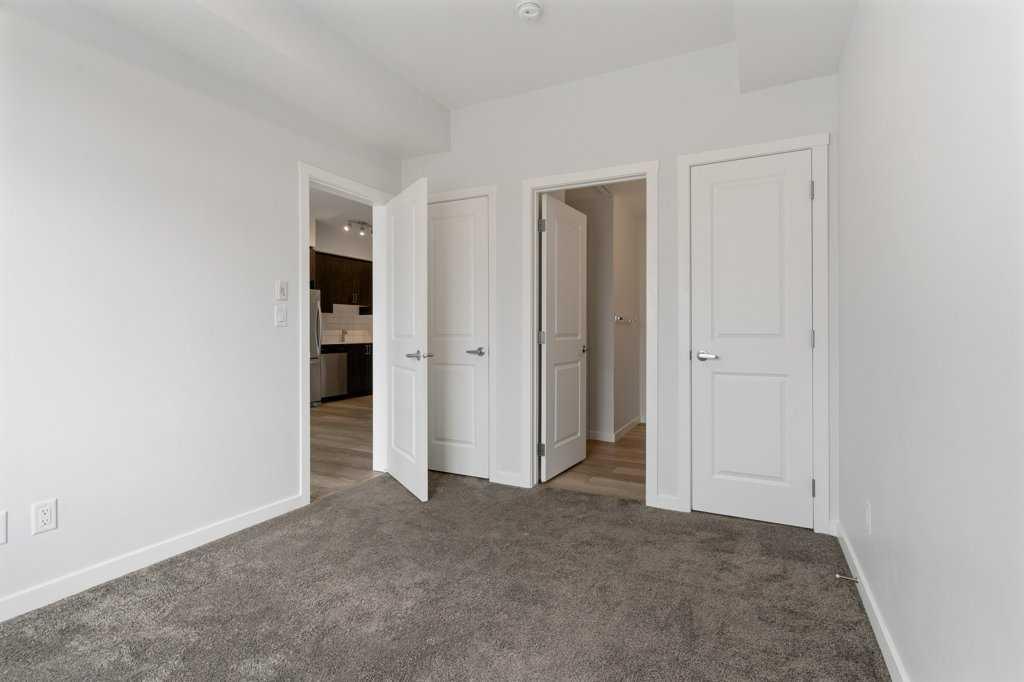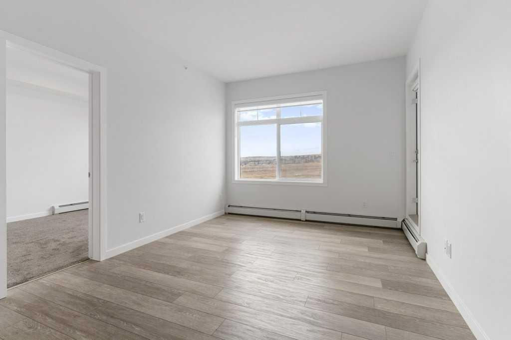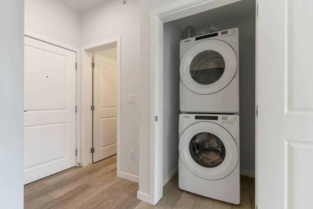 Stylish, well laid out TOP FLOOR 2 bedroom, 2 bathroom condo. Located in popular Sage Hill in the well maintained "Mark 101" by Shane Home, walking distance to shopping and amenities! Features include 9 foot ceilings, Luxury Vinyl Plank flooring and quartz counter tops throughout , vinyl windows with sleek blinds, and in-suite laundry. As you enter the unit, you will find a 4 piece bathroom, and the laundry closet. The modern Kitchen has a functional and warm feel, with dark brown laminate finished cabinets, quartz countertops, modern white subway tile backsplash and stainless steel appliances. Opening on to the kitchen is the family room with a large, bright, sunny window and a patio door leading to your private covered balcony, with gas line roughed in. The primary bedroom has an en-suite bathroom and double closets. The second bedroom is across the family room from the primary allowing for maximum privacy. This unit also includes 1 titled underground parking stall, a storage locker, and there is secure bike storage available in the parkade. Condo fees are affordable and include heat/water/sewer. Located just steps away from public transit, shopping, restaurants, and many other amenities, this is a GREAT place to live OR a wonderful investment property.