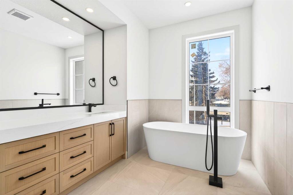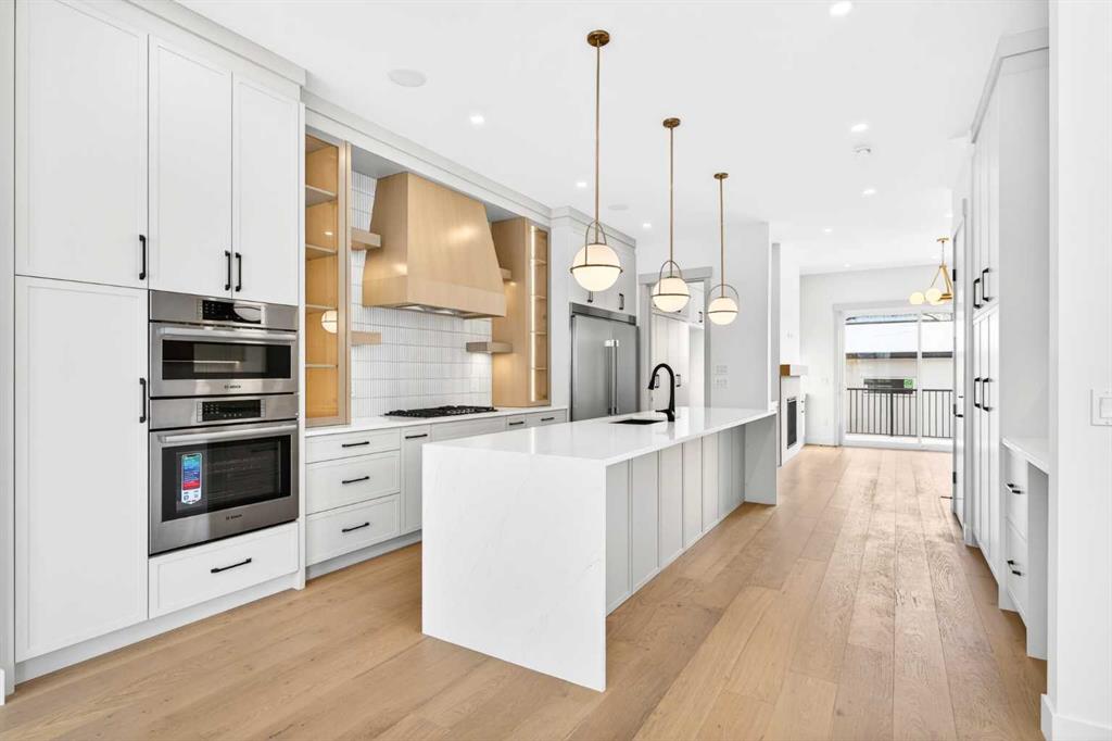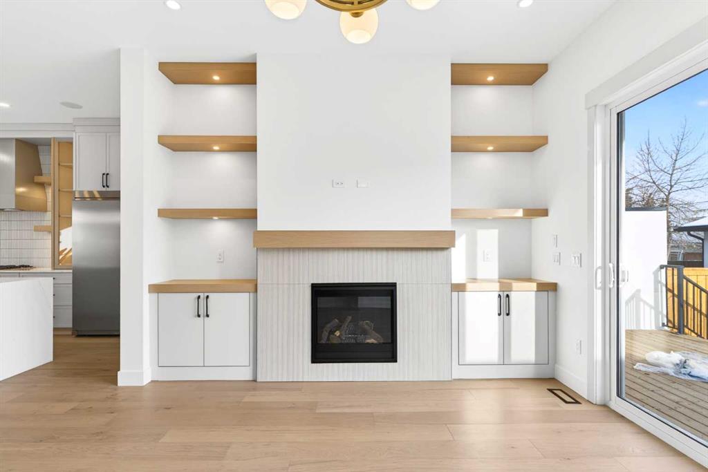 Glenbrook’s Finest! Step into a bright and inviting open-concept main floor where function meets elevated design. At the front of the home, a beautiful formal dining area sets the stage for stylish gatherings and elegant dinner parties. Just beyond, the chef-inspired kitchen boasts a massive waterfall quartz island, double-wide fridge, Bosch cooktop, wall oven, and dishwasher. Adjacent to the island, a thoughtful prep and storage area includes a built-in bar fridge and extended cabinets with convenient pull-out drawers—keeping everything organized and within easy reach for seamless entertaining. Warm neutral tones, built-in ceiling speakers, and timeless finishes create the perfect backdrop for both daily living and hosting with ease. At the rear of the home, a cozy fireplace lounge flows effortlessly onto a sprawling east-facing deck—ideal for enjoying quiet sunny summer mornings or relaxed evenings. Just off the kitchen, a spacious mudroom offers even more custom cabinetry to store your family’s essentials. Upstairs, a versatile loft area offers the perfect spot for a home office or reading nook. The massive primary retreat features heated floors in the spa-inspired ensuite, and a deep soaker tub. Two additional generously sized bedrooms and a stylish four-piece bath complete the upper level. Downstairs, the home offers even more flexibility with a bright and spacious legal basement suite (pending final City of Calgary approval). Featuring two private bedrooms and a large open living area, this level is ideal for extended family, guests, or future rental income. This home isn’t just beautifully finished—it’s a thoughtful investment in style, space, and long-term potential.
