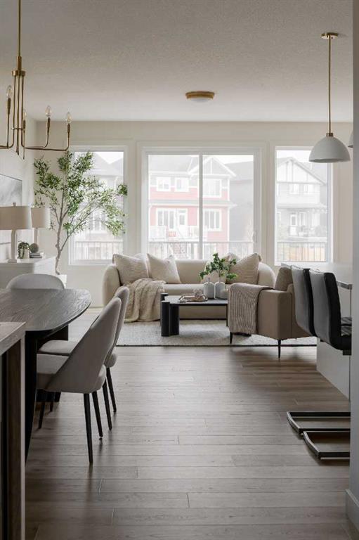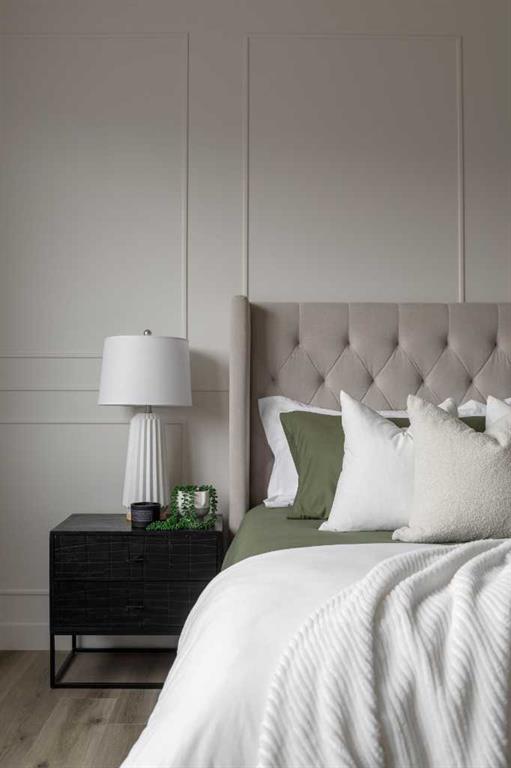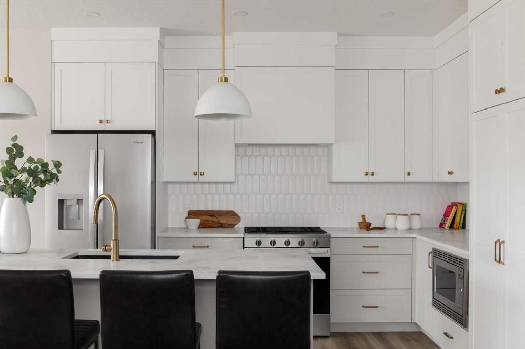 Experience the ideal mix of location, luxury, and lifestyle in this fully developed walkout bungalow in the family-friendly community of Sunset Ridge. Situated on a pie-shaped lot backing onto a green-space pathway and playground, this move-in-ready home is built by award-winning Aspen Creek Designer Homes and features the popular Ethan model. The open-concept main floor offers a beautiful kitchen with quartz countertops, large island, custom cabinetry, and stainless steel appliances, flowing into a bright living room with a cozy fireplace and access to a 17x10 deck. The primary suite is a private retreat with elegant wainscoting, soaker tub, glass shower, dual vanities, and a custom walk-in closet with direct access to the laundry room. The walkout lower level includes a spacious family/games area, wet bar, two bedrooms, 4-piece bath, and ample storage. Enjoy the east-facing, fully sodded backyard. Close to schools, parks, pathways, and minutes from downtown Cochrane and the Bow River.