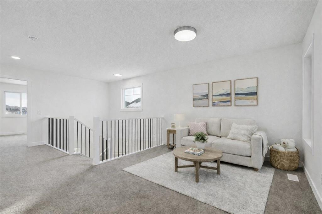 The open-concept living area is anchored by a striking electric fireplace, framed by large windows that flood the space with natural light and showcase the surrounding views. Upstairs, unwind in the expansive bonus room, or retreat to your private sanctuary in the primary suite, featuring a spa-inspired ensuite and a walk-in closet designed to impress. Two additional bedrooms complete the upper level, providing space and flexibility for family or guests.