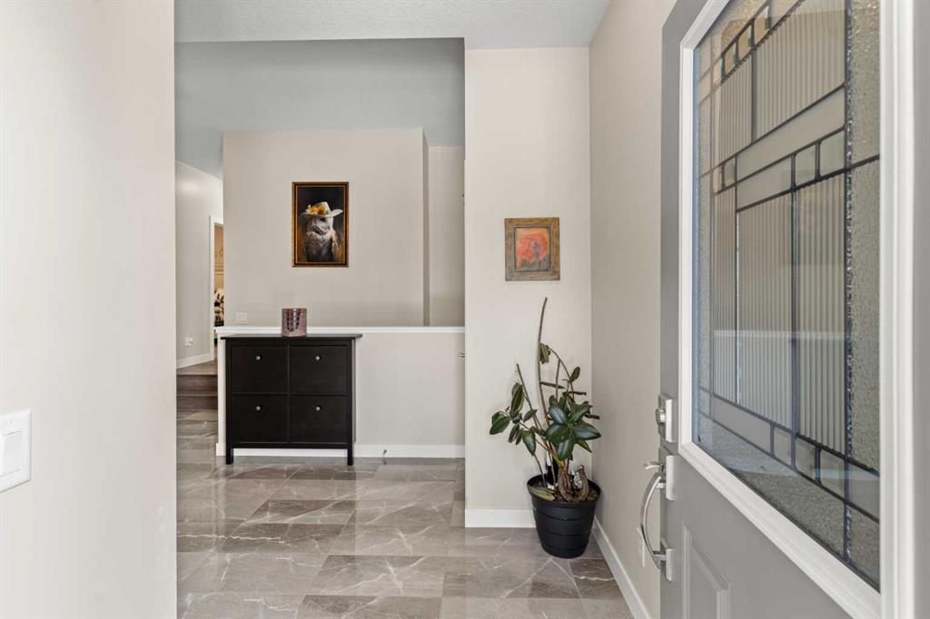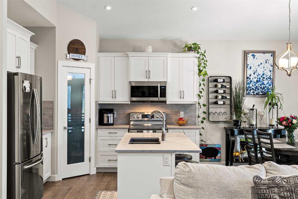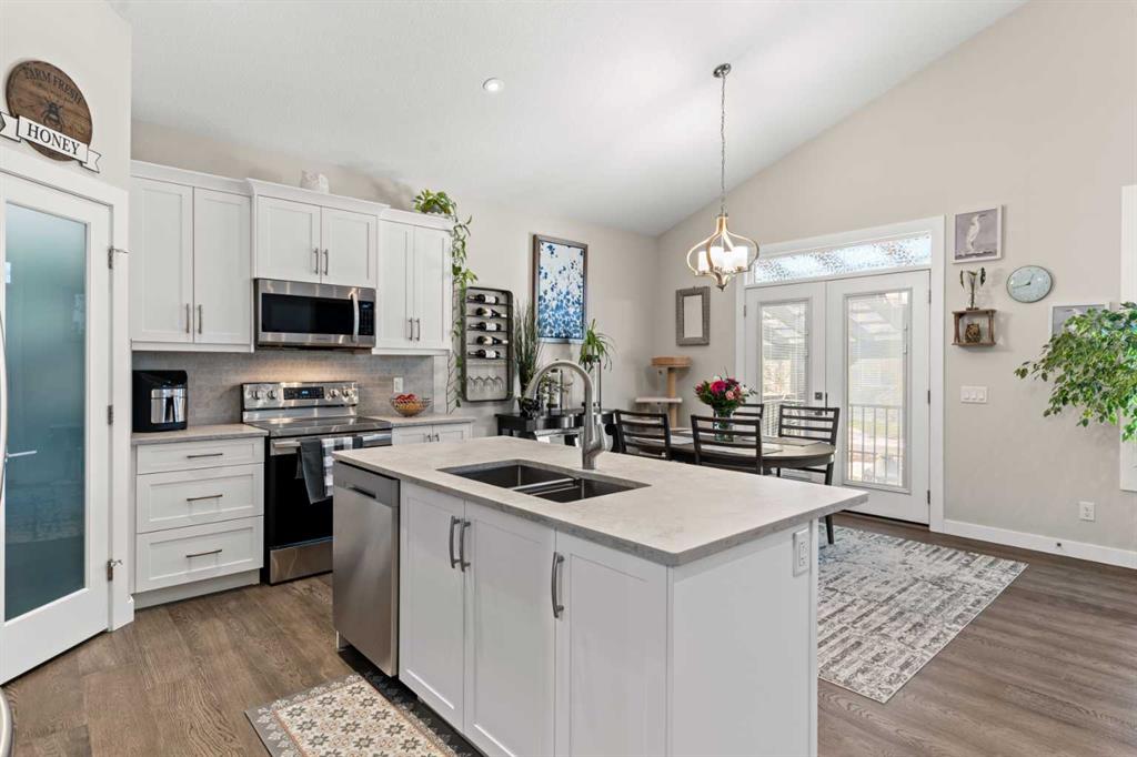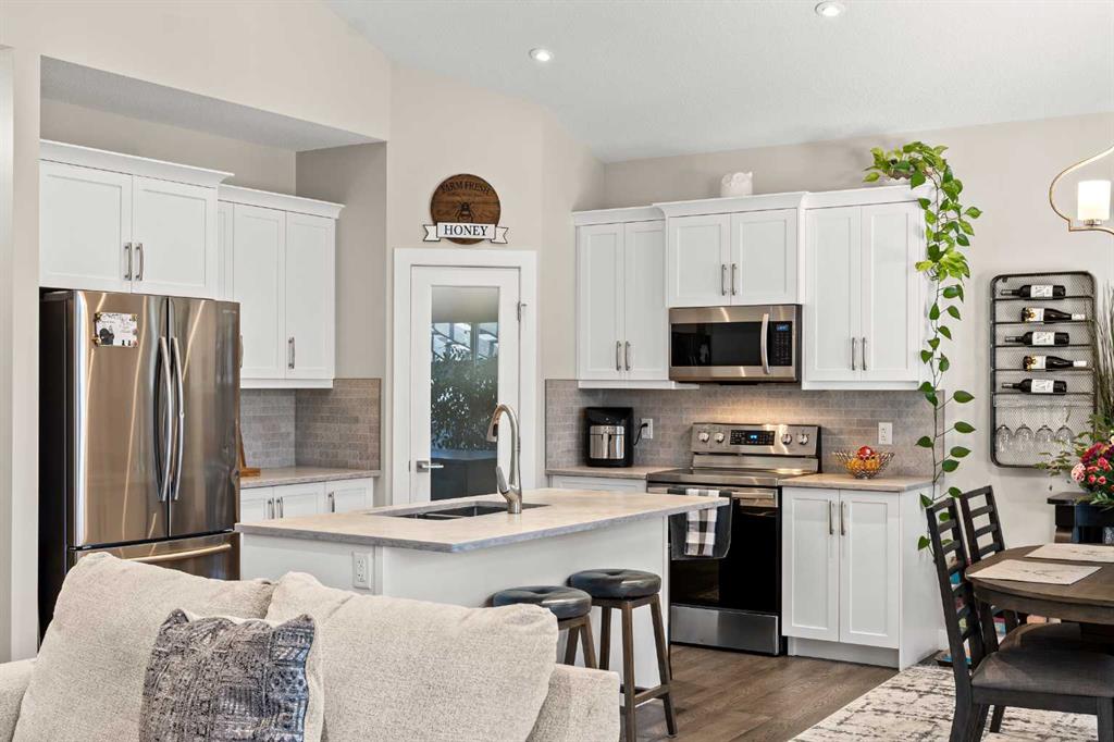 Welcome to the sought-after, family-friendly community of Drake Landing, prized for its proximity to schools, recreation facilities, scenic walking paths, and everyday amenities. This modern, sun-filled bungalow is loaded with upgrades, including an oversized heated double garage, triple-pane windows, hardwood and tile flooring, granite countertops, central A/C, and an on-demand hot water system. Vaulted ceilings enhance the bright, open feel throughout the main living space.