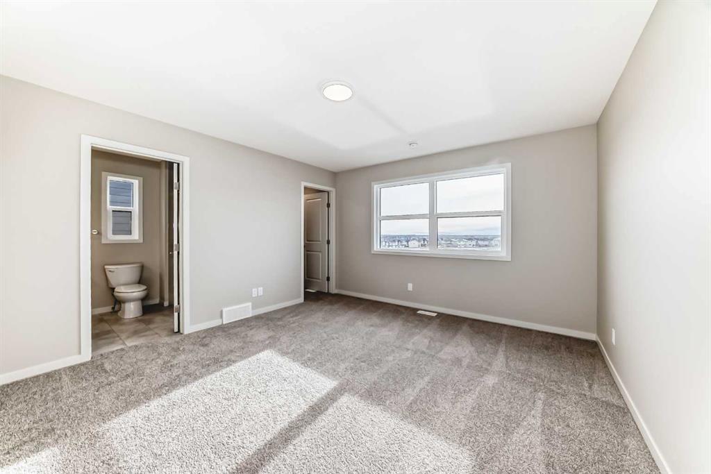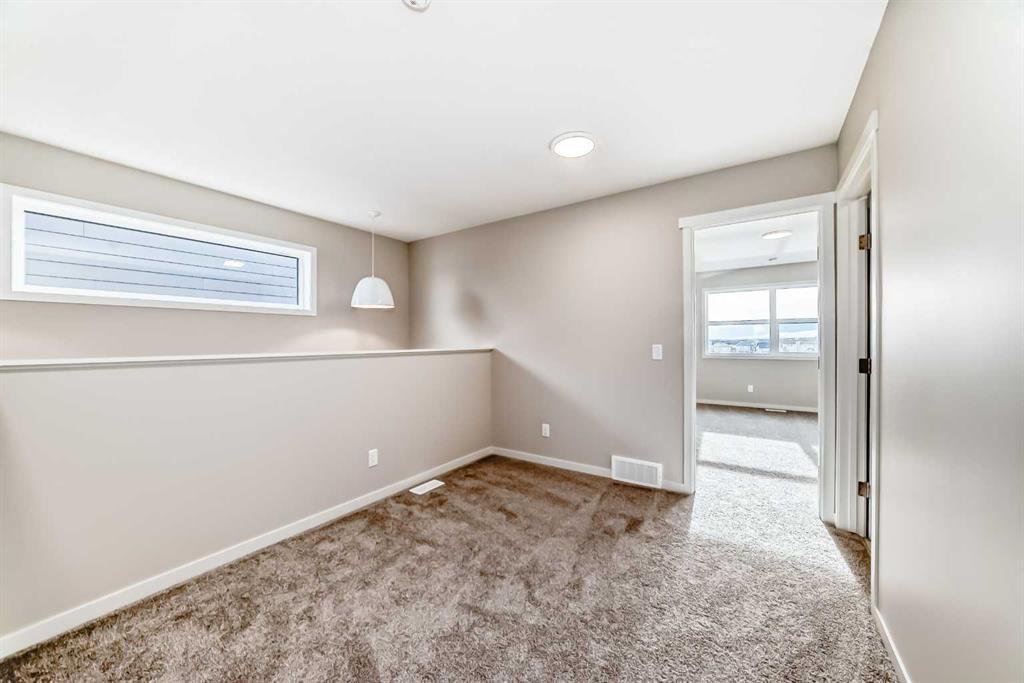 Welcome to 123 Sawgrass Gate NW — a brand-new, thoughtfully designed semi-detached home with no condo fees, and immediate possession available. Built by award-winning Hopewell Residential, this home offers exceptional craftsmanship, long-term value, and modern functionality in one of Airdrie’s newest and most exciting communities, Sawgrass Park. The exterior showcases durable Hardie Board siding, a premium fibre-cement product known for its longevity, resistance to fire, moisture, and pests, and its ability to maintain curb appeal with minimal maintenance—an excellent long-term investment for homeowners. A 20’ x 21’ rear garage pad and front yard landscaping included complete the exterior package. Inside, the main floor is bright and inviting, featuring quartz countertops throughout, a paint-grade spindle railing, and a beautifully upgraded kitchen with full appliance package, chimney-style hood fan, and ample storage—perfect for everyday living and entertaining. A versatile main-floor flex room with French door provides an ideal space for a home office, playroom, or formal dining area. Upstairs, you’ll find three well-appointed bedrooms, a spacious bonus room, and upper-level laundry for added convenience. The primary suite is a true retreat, offering a walk-in closet and a 4-piece ensuite with dual vanities and a walk-in shower. The undeveloped basement offers incredible future potential with 9’ foundation walls, a separate side entrance, and 3-piece bathroom rough-in plumbing, making it ideal for additional living space, a home gym, or future development to suit your needs (subject to municipal approvals). Located in Airdrie, Sawgrass Park is designed for modern living, with future parks, pathways, and convenient access to schools, shopping, and major commuter routes—offering the perfect balance of community connection and everyday convenience. This is an outstanding opportunity to own a brand-new, no-condo-fee home with premium finishes, thoughtful upgrades, and immediate possession. Don’t miss your chance to be part of this growing NW Airdrie community.