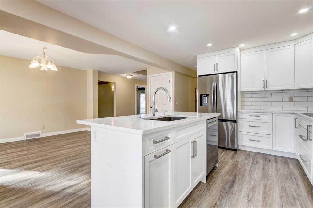 Openhouse Saturday Feb 21, 11 to 2. INCREDIBLE TRANSFORMATION! Welcome to this beautifully fully renovated family home including the basement(2023-2025) with over 3000 sqfeet living area located in the mature and highly desirable community of Hawkwood. This rare offering features 6 bedrooms + Den, including 5 spacious bedrooms on the upper level, making it ideal for growing families. From the moment you enter, you’ll appreciate the modern, sleek interior and thoughtful design. The main floor offers a large living room with bay window, custom built-ins, and a coffered ceiling perfect for a home office or study. The stunning white kitchen showcases a center island, quartz countertops, flat-finished ceilings, and stainless steel appliances, flowing seamlessly into the bright dining area. The cozy family room is anchored by a wood-burning fireplace with gas log lighter and enhanced by recessed mood lighting. A powder room and main-floor laundry complete this level. Upstairs, you’ll find four generously sized bedrooms, including the primary bedroom with a 4-piece ensuite and walk-in closet, plus an additional 4-piece bathroom. The fully finished basement (2024) offers exceptional flexibility, featuring a reconfigured layout, new bedroom, new kitchen, new bathroom, new flooring, and fresh paint, with its own separate entrance. The basement is currently an illegal suite with excellent potential for conversion. According to the contractor, most of the work required for a future Secondary Suite has been completed, with only an electrical panel upgrade remaining prior to City registration (Subject to City/Municipality Permitting and Approvals). This space is ideal for extended family living or future rental income. Additional upgrades include a new air conditioning system (2025), newer windows (approx. 12 years), two high-efficiency furnaces with drip humidifiers (approx. 5 years), a hot water tank(2025), and a brand-new covered deck. The front-drive, double heated garage is heated and equipped with 220V power and hot/cold water. Situated on a quiet crescent, just minutes from schools, shopping, and amenities, this newly modernized home offers outstanding value in an ideal family-friendly location. Don’t miss this exceptional opportunity—book your private showing today!