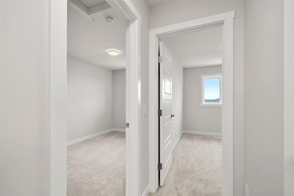 Welcome to 17 Sora Gate! You'll love the large open kitchen with a huge quartz topped island- perfect for busy mornings, casual family meals, and hosting friends. 9-foot ceilings and large windows flood the space with natural light. Durable engineered hardwood and modern finishes ensure this home looks stylish today and for years to come. Upstairs, the primary suite with walk-in closet and ensuite provides a private retreat, while two additional bedrooms adapt as your family grows- whether you need space for kids, guests, or a home office. Upstairs you'll also find a laundry closet, conveniently located near the bedrooms. With a detached double garage, no condo fees, and the peace of mind that comes with new-home warranty protection, this home is built with your future in mind. Located with quick access to Deerfoot and Stoney Trail, commuting and zipping around the city is a breeze. Surrounded by wetlands, pathways, and green space, Sora blends the calm of nature with easy access to the conveniences homeowners need. *** The First-Time Home Buyers' GST Rebate could save you up to $50,000 on a new home! You must be 18+, a Canadian citizen or permanent resident, and haven't owned or lived in a home you or your spouse/common-law partner owned in the last four years. Terms and conditions are subject to the Government of Canada/CRA rules and guidelines.***