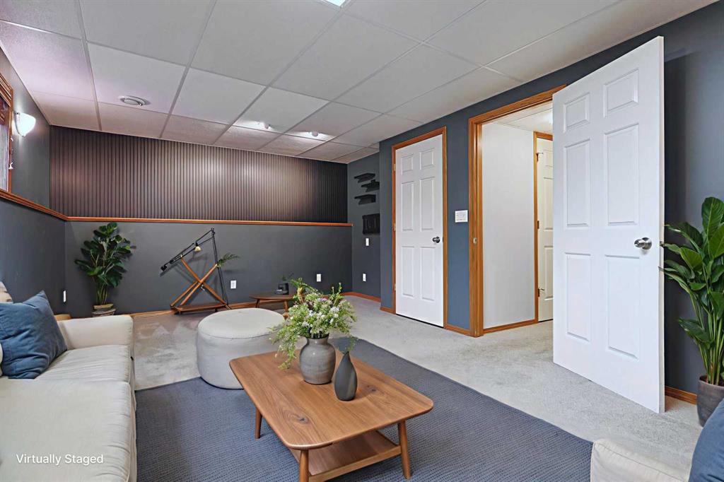 Only a few short minutes to Main Street & shopping at the Gateway retail centre is where you'll find this lovely home in Airdrie's Sunridge neighbourhood, available for quick possession for a new family to call it home! With a total of 4 bedrooms, this spacious & inviting home enjoys a bright eat-in kitchen, heated 2 car garage & central air, 3 full bathrooms & fenced West backyard with multi-level deck. Wonderful fully finished home with a fantastic living room with soaring vaulted ceilings & bay window, which leads up to the great-sized updated kitchen with laminate floors & quartz countertops, loads of cabinets & the stainless steel appliances include Whirlpool gas stove/convection oven & newer LG dishwasher & fridge (2021). Three bedrooms & 2 full bathrooms on the main level - highlighted by the West-facing primary bedroom with 2 closets & renovated ensuite (2023) with heated tile floors & shower. The lower level is beautifully finished with a large rec room, 4th bedroom with 2 closets & its own private ensuite, laundry with with LG washer & dryer, plus large crawlspace for all your storage needs & another storage room with cork floors & roughed-in plumbing for another bathroom. The West backyard is fully fenced & landscaped, complete with 2-level deck, storage shed, firepit & dog run. Additional extras include low-flow/dual-flush toilets, quartz counters in the main floor bathrooms & 2 car garage with shelving & heater. With its prime location in this central Airdrie community with easy access to Veterans Blvd, Woodside Golf Course & QE2 to take you to Cross Iron Mills, airport & Calgary.