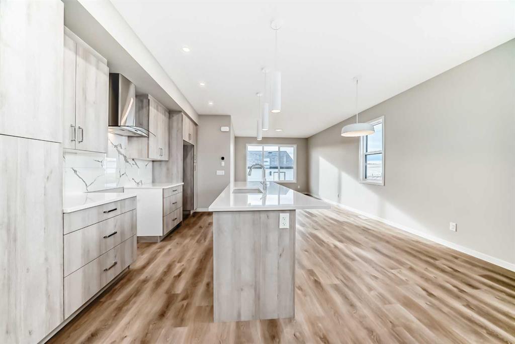 Welcome to this thoughtfully designed 1,487 sq ft home in Sawgrass Park, Airdrie’s newest NW community where everyday convenience meets the beauty of nature. Built by Hopewell Residential, one of Alberta’s most trusted and award-winning builders, this home combines quality construction, energy efficiency, and family-friendly living. From the moment you arrive, the HARDIE BOARD SIDING sets the tone with its modern curb appeal and reputation for long-lasting durability. Step inside to a bright and open main floor featuring luxury vinyl plank flooring, knockdown ceiling texture, and a well-planned layout designed for both entertaining and everyday comfort. The upgraded kitchen is as functional as it is beautiful, with QUARTZ countertops, stainless steel appliances, a CHIMNEY HOOD FAN, built-in microwave, and a second bank of drawers for added storage. Whether you're preparing weeknight meals or hosting friends, this space delivers. Upstairs, you’ll find three generously sized bedrooms, including a private primary retreat with a walk-in closet and 4-piece ensuite. A functional office space, laundry closet and full main bathroom are thoughtful touches creating a warm, welcoming vibe. Need more space in the future? The basement is ready for your vision—complete with 9’ foundation walls, a separate side entrance, and plumbing rough-in, offering exciting potential for a legal suite (subject to City approval), media room, or personalized family space. Step outside to your 20' x 20' DETACHED GARAGE on your large corner lot yard. Sawgrass Park is all about connection—featuring a 5-acre central greenspace, beautiful wetlands, and plans for schools and recreation facilities that make it the ideal place to plant roots. Whether you’re heading into Calgary or exploring the growing amenities in Airdrie, everything is within easy reach. This is your opportunity to own a brand-new home with timeless features in a vibrant, growing community. Schedule your private showing today!