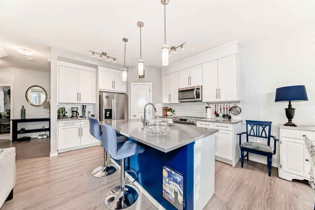 Immaculate and truly move in ready, this beautifully maintained home offers a desirable south facing backyard and is perfectly situated in the sought after community of Sunset Ridge. With 2,176 sq. ft. of thoughtfully designed living space, this modern 5 bedroom, 3.5 bathroom residence has clearly been lovingly cared for and enjoyed as a long term family home. From the moment you enter, you will appreciate the pride of ownership and attention to detail throughout. The main level features 9 foot ceilings and stylish luxury vinyl plank flooring, creating a bright and welcoming atmosphere. A spacious foyer sets the tone and leads to a dedicated home office, ideal for working from home, studying, or managing a busy household. The open concept layout is filled with natural light from expansive windows and flows seamlessly into the elegant living room, anchored by a cozy natural gas fireplace that makes this space perfect for everyday living and family gatherings. At the heart of the home is the sleek, gourmet kitchen, designed with both function and style in mind. It features stainless steel appliances, a corner pantry, grey quartz countertops, a large center island for casual meals or homework time, and modern full height white cabinetry offering ample storage. The adjacent dining area opens onto the south facing deck and patio, providing a private outdoor extension of the living space that is ideal for entertaining, playtime, or simply unwinding. The covered sunroom adds a versatile, sheltered area that can be enjoyed throughout the year. Upstairs, you will find four generously sized bedrooms, a full 4 piece bathroom, and a centrally located bonus or media room that works perfectly as a family lounge, playroom, or movie space. The primary retreat is a true escape, complete with a spacious walk in closet and a luxurious 5 piece ensuite featuring a soaker tub and separate stand up shower. The fully finished lower level, completed by the developer, adds exceptional flexibility with a large and bright great or media room, a convenient kitchenette, a fifth bedroom, and a 5 piece bathroom, making it ideal for guests, teens, or extended family. Every level of this home reflects thoughtful planning and long term enjoyment. Located close to schools, parks, playgrounds, and all essential amenities, this is a home where families can truly settle in and grow. Well cared for, beautifully presented, and ready for its next chapter, this exceptional property is a must see. Book your private showing today, you will not be disappointed.