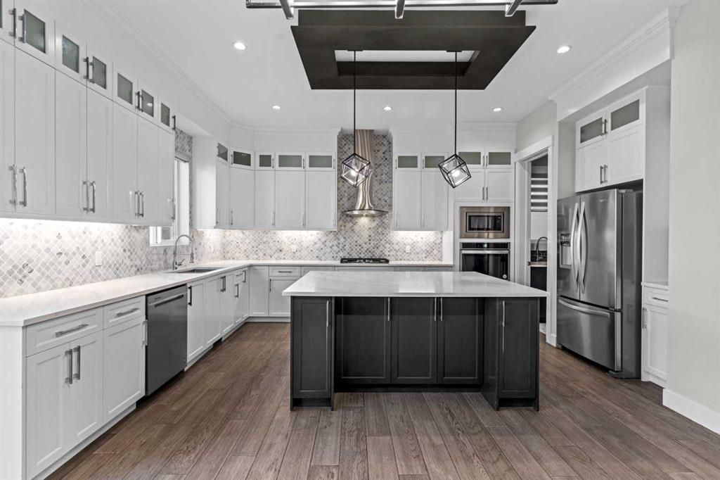 OVER 4,600 SQ FT OF LUXURY LIVING, WALKOUT BASEMENT, TRIPLE GARAGE, SPICE KITCHEN, SOARING 10-FOOT CEILINGS, MAIN FLOOR BED & FULL BATH, and just STEPS AWAY FROM THE LAKE! Welcome to this distinguished Kinniburgh residence — thoughtfully designed for LUXURY FAMILY LIVING and positioned just steps from Chestermere Lake. From the moment you enter, the scale is undeniable. A spacious double-height foyer opens into an expansive, light-filled main level where clean lines, modern finishes, and refined details create a timeless yet contemporary feel. At the heart of the home is the SHOWSTOPPER CHEF’S KITCHEN — bright, modern, and built for gathering. An OVERSIZED QUARTZ ISLAND anchors the space, complemented by premium stainless steel appliances and a fully appointed SPICE KITCHEN / BUTLER’S PANTRY for seamless entertaining. Whether hosting elegant dinner parties or large family celebrations, this layout was designed to bring people together. The formal dining area with feature detailing flows effortlessly into the inviting family room with a GAS FIREPLACE, creating warmth and presence. A MAIN FLOOR ROOM (ideal as a suite or private office), main floor full bath, and thoughtfully designed mudroom add both function and flexibility. Upstairs, 9-FOOT CEILINGS continue the airy feel. The PRIMARY RETREAT offers impressive proportions, a SPA-INSPIRED 5-PIECE ENSUITE, and a custom walk-through closet with built-ins. Three additional bedrooms — including a SECOND BEDROOM WITH ITS OWN ENSUITE AND WALK IN CLOSET — provide exceptional comfort for growing families. A generous BONUS ROOM and second-floor laundry complete the upper level with everyday convenience. Additional Features: • CENTRAL AIR CONDITIONING. • FULLY LANDSCAPED YARD with PAVED SIDE ACCESS • OVERSIZED, INSULATED & DRYWALLED TRIPLE ATTACHED GARAGE • 7 BEDROOMS | 5 FULL BATHROOMS • Over 4,600 SQ FT. Located facing a serene green walkway/park, walking distance to East Lake School, and moments to the lake, this home is set within one of Chestermere’s most sought-after luxury family communities. And for those seeking versatility, the FULLY FINISHED WALK-OUT BASEMENT offers 9-FOOT CEILINGS, 2 BEDROOMS, a FULL KITCHEN, SEPARATE ENTRANCE, SECOND LAUNDRY, and expansive recreation space. Ideal for MULTI-GENERATIONAL LIVING or an income-generating opportunity — thoughtfully integrated without compromising the elegance of the main residence. This is LUXURY with scale, flexibility, and location — a rare opportunity. Book your showing to view this home now, as it won't last long!