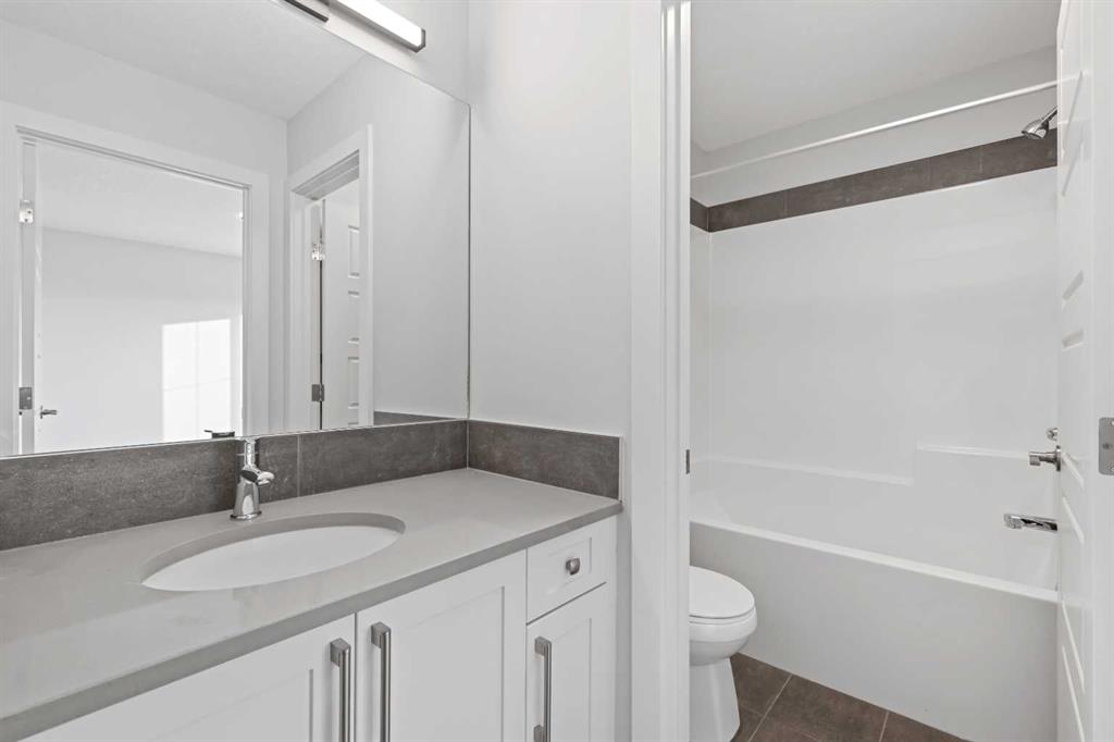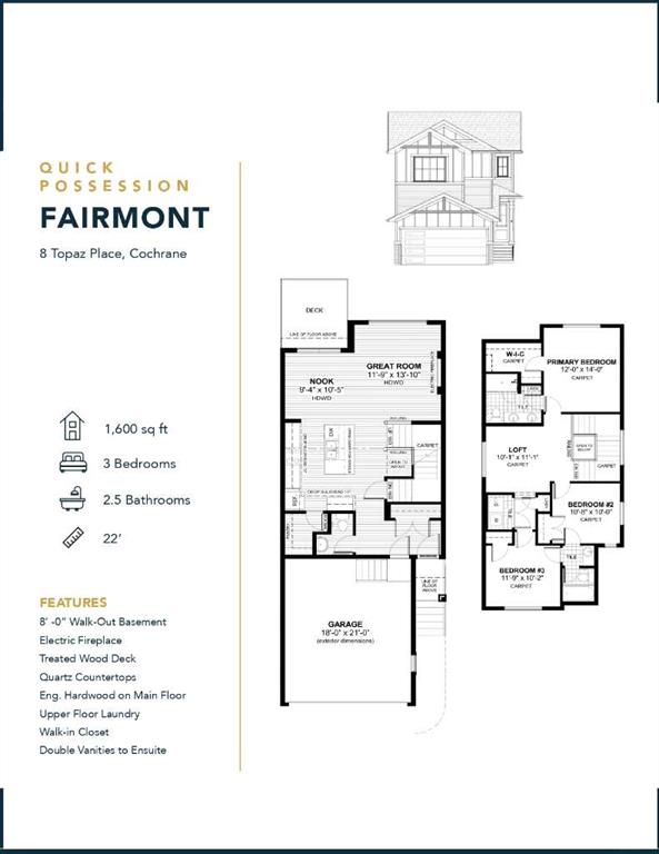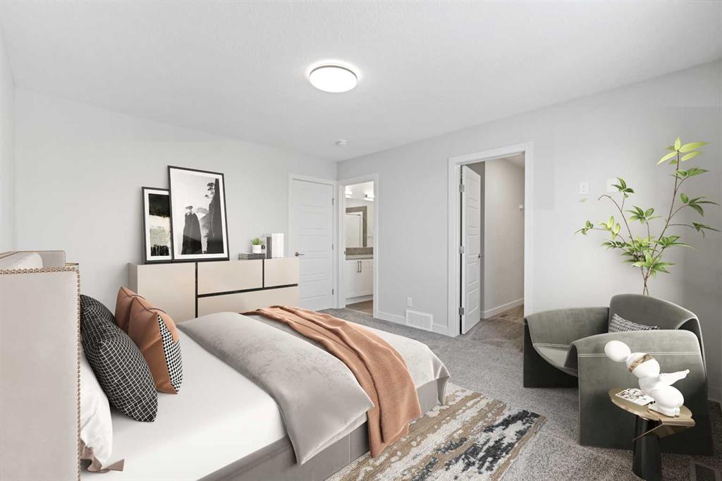 BRAND NEW HOME by Douglas Homes, Master Builder in central Greystone, short walking distance to parks, the Bow River, major shopping & interconnected pathway system. Featuring the Fairmont with a south facing back yard, walkout basement, deck off the main floor accented by built out columns on an R-MX zoned lot for POTENTIAL future lower level suite. NOTE: a secondary suite would be subject to approval and permitting by the city/municipality. Located on a quiet street, very close two Children's Play Parks & paved back lane. This gorgeous 3 bedroom, 2 & 1/2 half bath home offers 1600 sq ft of living space. Loads of upgraded features in this beautiful, open floor plan. The main floor greets you with a grand glazed 8' front door, soaring 9' ceilings, oversized windows , & 8' 0" passage doors. Distinctive Engineered Hardwood floors flow through the Foyer, Hall, Great Room, Kitchen & Nook adding a feeling of warmth & style. The Kitchen is completed with an oversized entertainment island (7'0" single level island) & breakfast bar, roomy closet pantry with 8'0" French Door , Quartz Countertops, 42" Cabinet Uppers accented drop bulkhead, Pots & Pans Drawers, soft close doors & drawers throughout, new stainless appliance package including Side by Side Fridge with Ice & Water Feature, Microwave/Hood Fan combo over the stove , Gas Range, Fridge & built-in Dishwasher. The main floor is completed with an expansive, open Great Room & Nook finished with over height windows & Napoleon "Entice" fireplace. Upstairs you'll find a generous Primary Bedroom with 4 piece Ensuite including dual Quartz vanities with undermounted sinks, oversized 5'0" x 3'0" shower, Linen cubby, & ceramic tile flooring. There is also a nicely sized walk-in closet accessed from the Primary Bedroom. The 2nd floor is completed by a spacious, centralized family Loft & 2 good size additional bedrooms with double door closets. The 2nd & 3rd bedrooms have the convenience of a Jack & Jill main bath with Quartz countertop, undermounted sink & tile flooring. You're certain to love the convenience of the 2nd Laundry Room completed with large access doors, light & tile flooring. Spacious, Beautiful and Elegant! The perfect place for your perfect home. Call today! Photos are from prior build & are reflective of fit, finish & included features. Note: Front elevation of home & interior photos are for illustration purposes only. Actual elevation style, interior colors/finishes, & upgrades may be different than shown & the Seller is under no obligation to provide them as such. Directions: Come to the Show Home first located at 500 River Avenue.