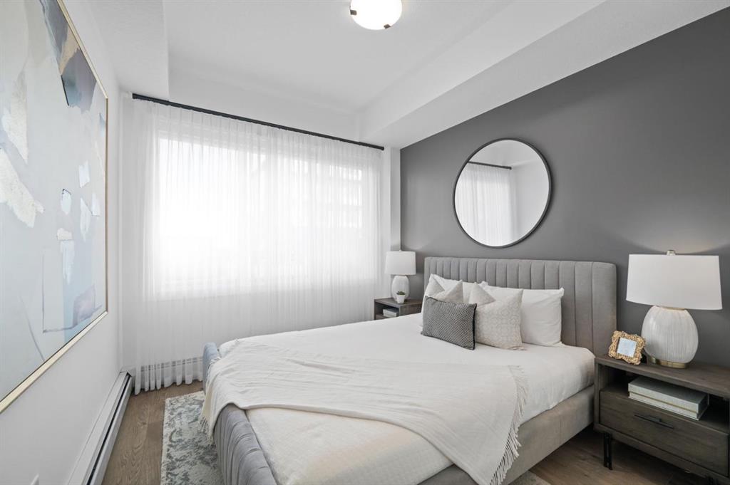 Welcome to Lockwood, where comfort meets convenience in this stunning 2-bedroom, 2-bathroom, plus den, unit with a titled parking stall, located in the vibrant and fast-growing community of Chelsea in Chestermere. Surrounded by parks, playgrounds, and scenic walking trails—and just moments from Chestermere Lake—this home is perfectly positioned for both relaxation and adventure. Enjoy easy access to local amenities like Chestermere Station, Chestermere Crossing, and an array of shopping and dining options, all just minutes away. Step inside to experience a thoughtfully designed open-concept layout featuring an oversized east-facing balcony that floods the living space with natural morning light and offers serene views. Every detail has been carefully curated, from the luxurious vinyl plank flooring and high ceilings, to the chef-inspired kitchen complete with full-height soft-close cabinetry, sleek stainless steel appliances, and an elegant eat-up bar topped with quartz countertops—ideal for casual meals and entertaining. The primary bedroom, features a generous walk-through closet and a private 3-piece ensuite. A second bedroom, perfect for guests or a home office, and a stylish 4-piece main bathroom complete the space. Beyond your private residence, enjoy a wealth of on-site amenities including a fully equipped fitness centre, owners’ lounge, bike storage, and more—all designed to complement an active and social lifestyle. This bright and modern home is move-in ready, offering a premium opportunity to embrace the TRUMAN lifestyle in one of Chestermere’s most exciting new communities. *Photos shown are of a similar unit