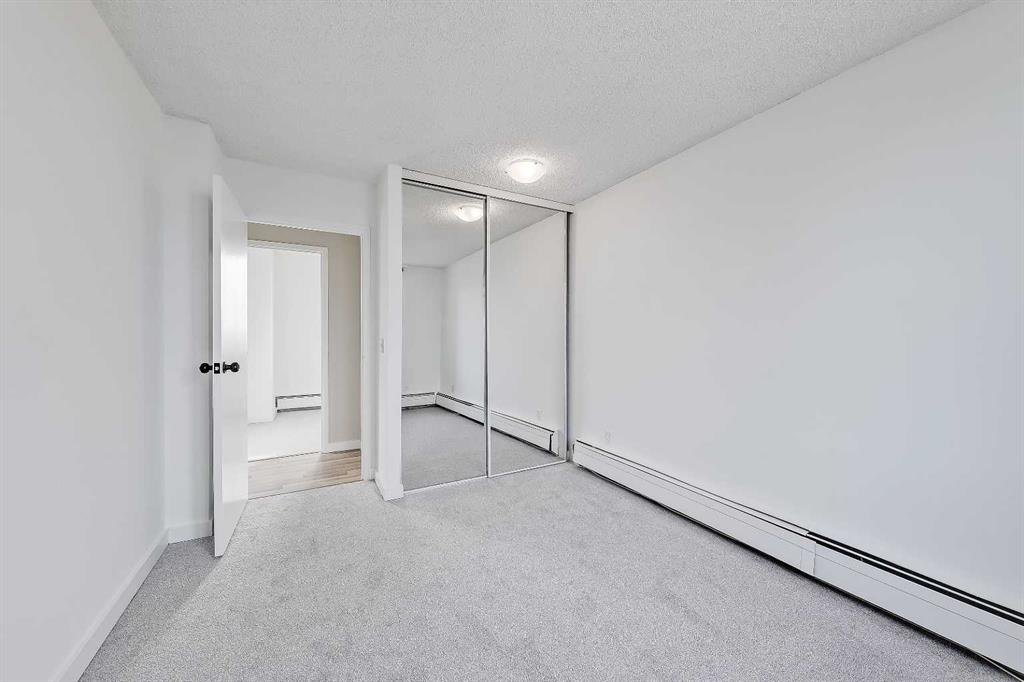 Year-round sunny NW-facing balcony with gorgeous city AND mountain views! Over $25K in new interior updates, and it is perfectly move-in ready from all the updates! This bright and airy 2-bed, 1-bath corner unit offers exceptional value, comfort, and convenience in one of NW Calgary’s most established communities. Ideal for students, young professionals, first-time buyers, or investors looking for a high-income, low-maintenance property near the University of Calgary, Foothills Hospital, Children’s Hospital, Market Mall and the new Calgary Cancer Centre can be extremely recession-resistant in your rental portfolio. Inside, a welcoming foyer with an oversized storage closet leads into a functional, well-planned layout designed for easy living. The kitchen features all of the essential appliances, including an updated stove, ample cabinetry with updated hardware, and a dual-basin stainless steel sink. The adjacent living room is bright and spacious, framed by large windows that fill the space with ample natural light. Step directly onto the private balcony to enjoy fresh air and beautiful mountain views, great for unwinding after a long day. Both bedrooms feature newly carpeted floors, creating comfortable and quiet retreats. The 4-piece bathroom features a vanity with storage, a tub/shower combo with tile surround, and tiled flooring. Additional updates throughout the home include laminate flooring in the living area, freshly patched & painted walls and ceilings, painted baseboards, and more! Plus, the oversized storage room off the foyer could accommodate future in-suite laundry if desired. Adding even more value, this unit includes an assigned covered parking stall in the parkade, a rare and highly desirable feature for this building. Residents of The Fortress enjoy fantastic amenities, including an indoor saltwater swimming pool, fitness center, and tennis courts. Secure bike storage is also available. Located steps from the Dalhousie C-Train station, shopping, restaurants, and parks. And with quick access to major routes, the University of Calgary and SAIT, Market Mall, Foothills Medical Centre, and downtown, you’ll be where you need to be in a breeze. This condo offers an unbeatable lifestyle and excellent long-term value. All that’s left to do is move in!