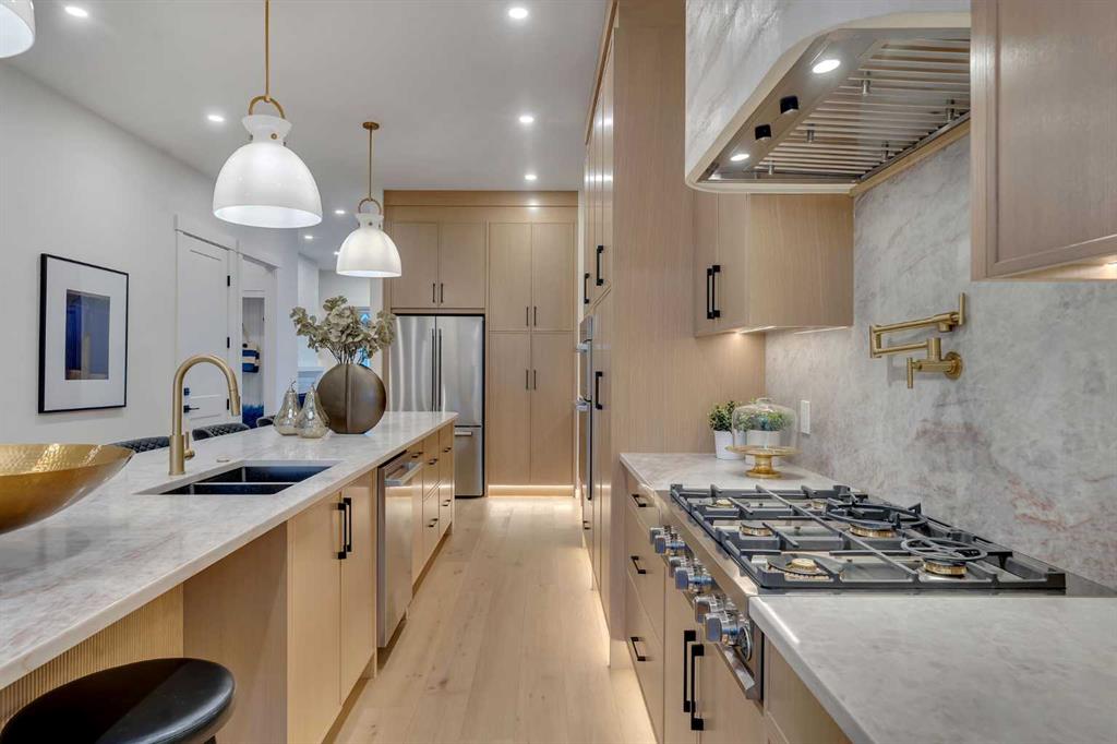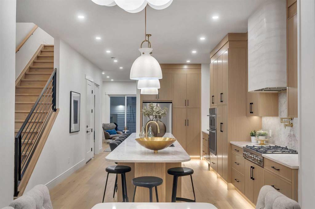 Welcome to the heart of desirable Capitol Hill. This newly built two storey home pairs inner city convenience with family-first design. It offers just under 2,900 sq ft of living space that balances entertainment and residential areas to create an exceptional home. A key feature is a developed basement legal suite that is self-contained and configured to provide both privacy and income potential. The basement can be a two-bedroom rental or private accommodation with its own entry. The main floor impresses with 10' ceilings and large windows bringing abundant natural light. The kitchen is designed for cooking and conversation: BERTAZZONI gas cooktop, Taj Mahal quartz countertops & full backsplashes and continuous cabinetry that supports efficient workflow. A defined separation between the kitchen and the living room at the rear creates clear zones for meal prep and relaxing. The living room anchored by a gas fireplace, while large sliding doors open to the rear deck. The outdoor space is fully fenced and professionally landscaped, offering a low maintenance setting for kids, pets and summer entertaining.
