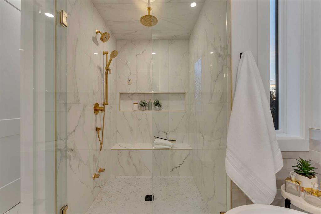 Upstairs is organized for privacy and daily ease. The vaulted primary retreat includes a spacious walk-in closet and a spa like ensuite with steam shower, freestanding tub, dual vanities and heated flooring for added comfort. Two additional well sized bedrooms are served by full baths on the level and a dedicated laundry room that smooths morning routines. Generous closets and clear sight lines add practical value throughout.