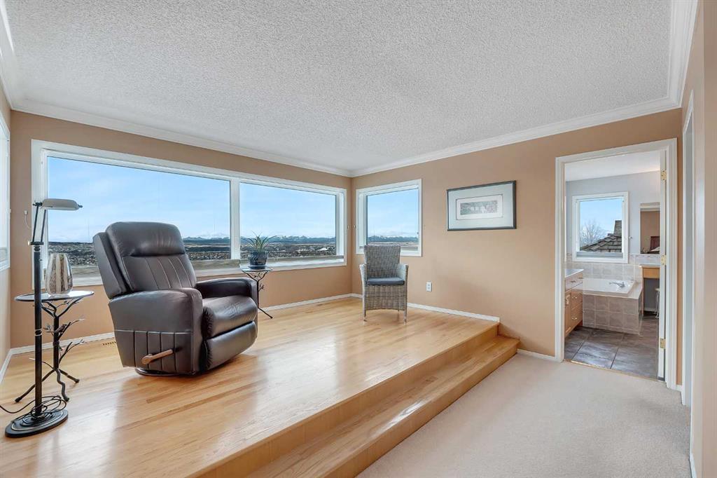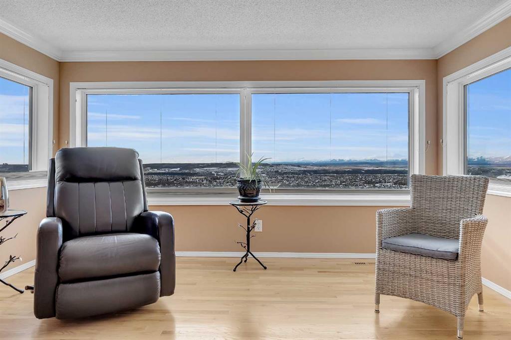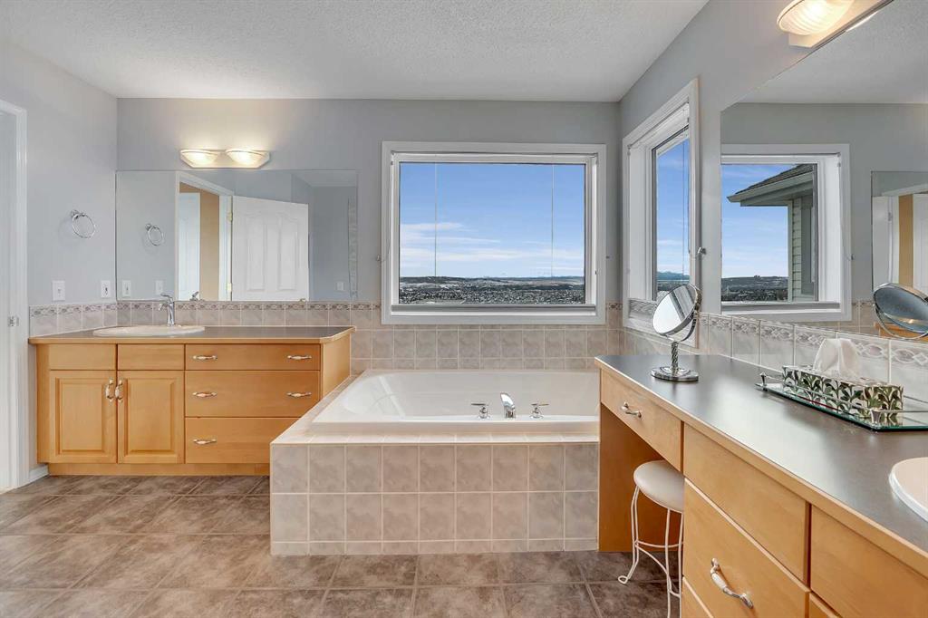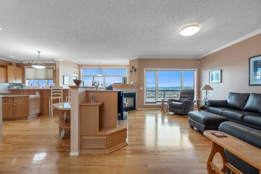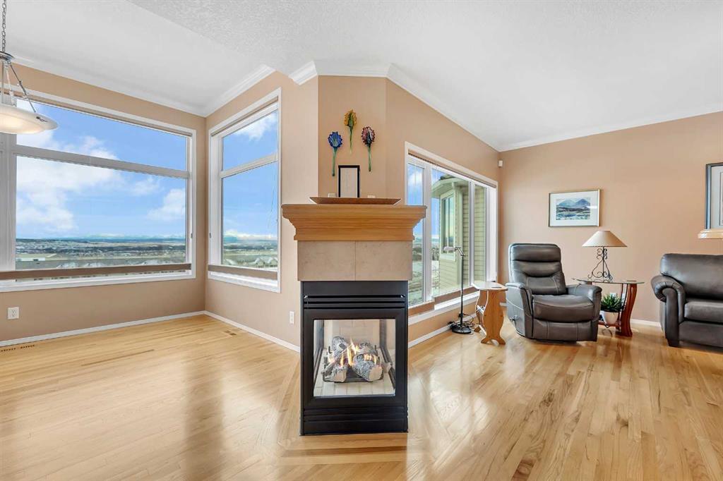 Location, Location, Location ! The true value of real estate. This home has it ! Stunning panoramic mountain to city view from all 3 levels. From those socked in days where you can only see a little bit of mountain views, to those crisp mountain view days where it looks like you can walk to the mountains, the sun rise & sun sets, your scenery changes constantly. The sunny south exposure back yard looks out to the green space/walking path. Park benches, park/play areas along the paths for you to enjoy as well. A triple car garage at the front of the home, with a drive through to an exterior parking pad, the buyer looking for the dream garage, this is it. A deck on the front of the home, a wrap around deck at the back & patios, this is a great home for the outdoor family. Professional landscaping from front to back is easy to maintain. There is a storage shed built into the home, not free standing. Inside the home you will see the immaculate care. Throughout the years this original owner has repaired and updated, using quality items. A list of upgrades is available for the interested buyer. Nothing to do but move in ! You will love the retreat /flex space in the master bedroom. The master bedroom is huge. Three bedrooms on the upper level, one bedroom in the basement plus another room (with no closet) that could be used for an additional bedroom. The master and the lower bedroom both have walk in closets. The laundry room is on the main level, a large walk in pantry and a beautiful kitchen with ample cabinets & tons of counter space. Take note of the beautiful Premium Naica polished quartzite granite counter tops. The cook will enjoy this space. The cozy sitting area on the main level has a 3 sided fireplace and a build in cabinet for your TV. The main floor office/den area comes ready with a large desk and cabinets. Going down stairs you will see the family room with another fireplace and lots of built-in cabinets. With tons of windows from top to bottom and natural light this home is very bright. The furnace/utility room has ample storage available. Flooring is hardwood, carpet & tile. All the appliances, furnaces, tankless water system & the shingles on the roof are a few of the upgrades. Windows as well have been upgraded. Call your favorite realtor today for a private viewing.