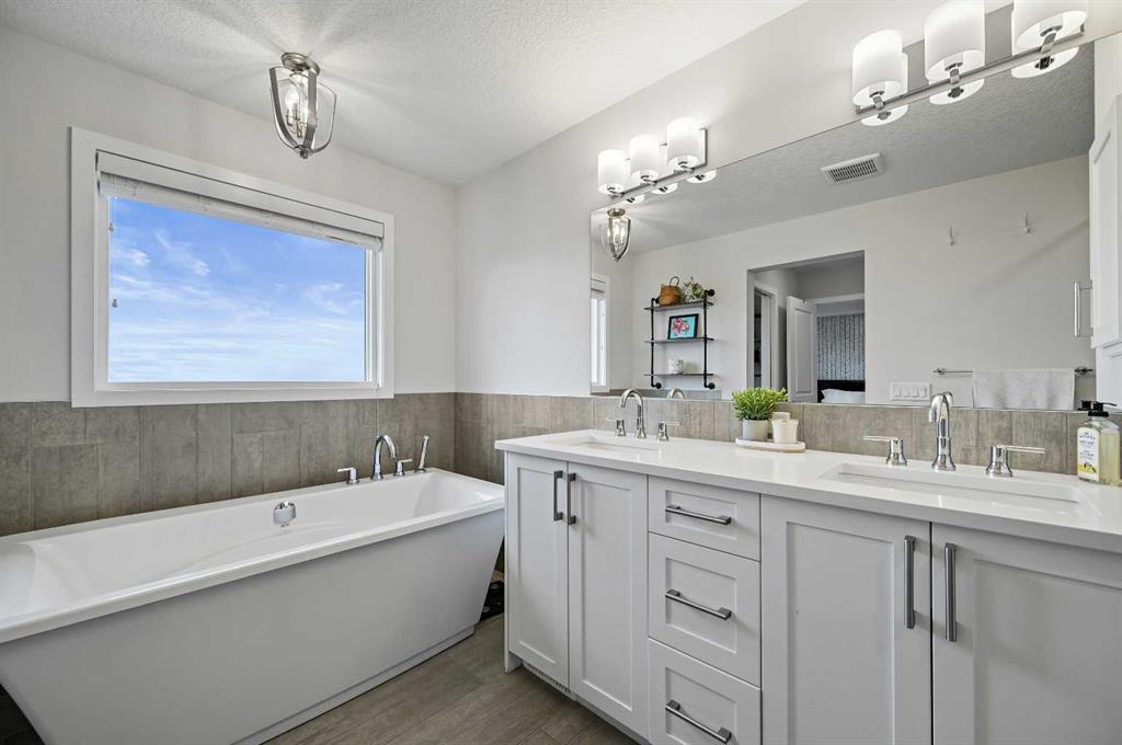 Upstairs you’ll find four bedrooms — ALL with WALK-IN CLOSETS — plus a large central bonus room with VAULTED ceilings, ideal for family movie nights or a kids’ retreat. The spacious primary suite features a TRAY ceiling, separate recessed (dimmable) pot lights and large walk-in closet with built-ins. The luxurious 5-piece ensuite offers dual sinks with a raised vanity, standalone soaker tub, and a fully tiled shower with additional wand/control. A second 5-piece bathroom serves the additional bedrooms with a separate pocket door to the tub/shower and toilet for added convenience and functionality.