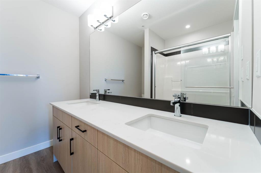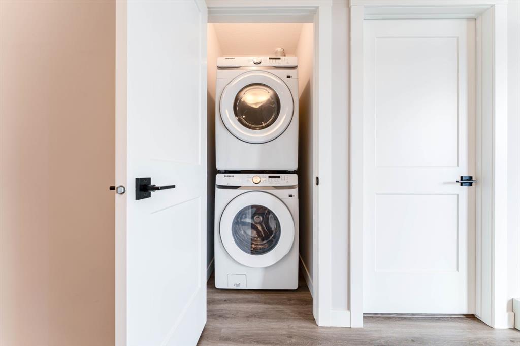 This is a gorgeous 3rd floor and nearly brand new 2 Beds 2 Baths and 2 Walk In Closets unit. Award winning Logel Homes built unit in the sought after Livingston community in the NW of Calgary. The east facing unit comes with Samsung stainless steel appliances, all quartz counters and black contrasting hardware. The generous sized rooms both have walk in closets and are well lit with good sized windows for adequate natural light. The living room leads to the big balcony, which has a BBQ gas line. The unit is in a cozy smaller condo building, only 12 units per floor, with lots of great amenities surrounding it, like ponds, walking trails and a great community recreation centre, the Hub! This is a must see unit! Listing agent has an interest.