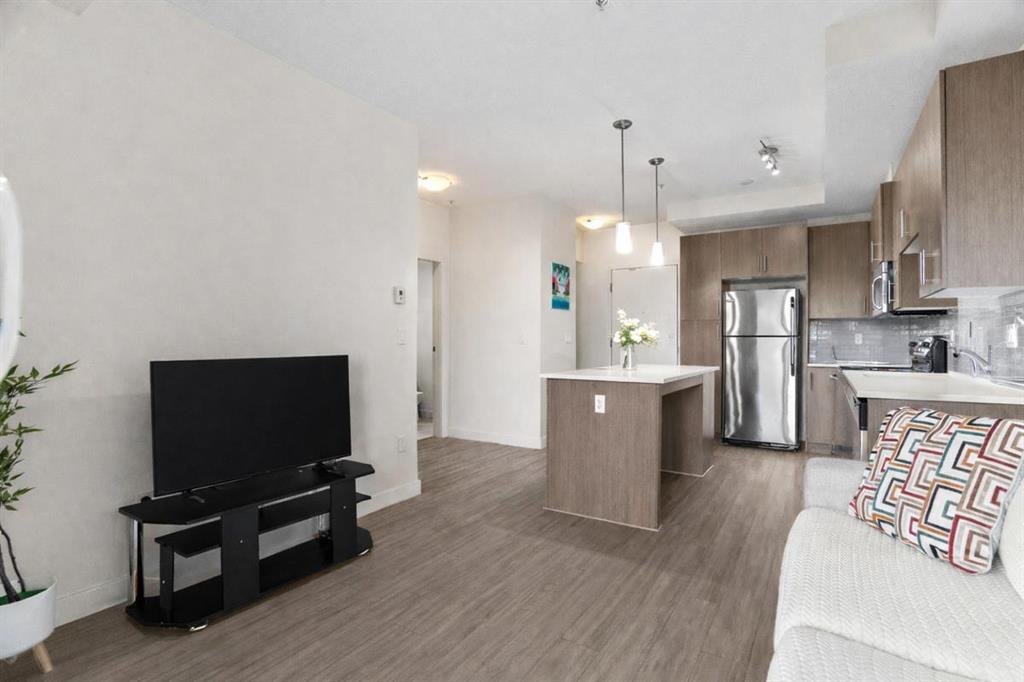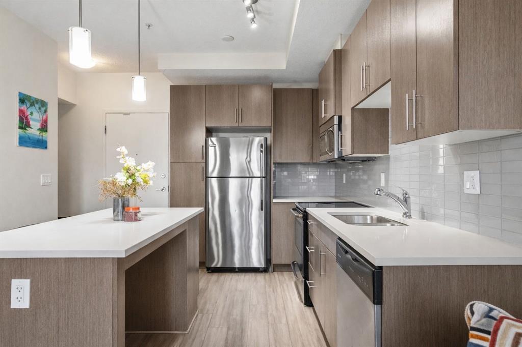 Move-in ready and full of natural light, this 1-bedroom, 1-bathroom condo in the highly sought-after lake community of Midnapore offers the perfect blend of comfort, convenience, and modern design. Whether you’re a first-time buyer, or investor, this bright and stylish home is the ideal opportunity to enjoy a low-maintenance lifestyle with year-round lake access. Inside, you’ll love the open-concept layout that has been freshly painted, featuring 9-foot ceilings and large windows that create a spacious, airy feel. The modern kitchen is equipped with stainless steel appliances, quartz countertops, and a central island with seating, making it a great space for cooking, entertaining, or enjoying your morning coffee. The living and dining area flows seamlessly onto your private, east-facing patio—perfect for relaxing or barbecuing with the gas line hookup already in place. The privacy wall between balconies adds a nice sense of seclusion and comfort. The spacious bedroom has brand new carpet and offers generous closet space and large windows. You’ll also find in-suite laundry, keeping chores simple and convenient. Practical features include heated, titled underground parking, a separate titled storage unit, and pet-friendly policies that allow up to two cats or dogs (with board approval). This is one of the few affordable condos in a newer building in the area, offering fantastic value without compromise. Your monthly condo fees include heat, gas, water, and sewer, as well as the Midnapore Lake HOA fee, giving you full access to the lake and its incredible year-round amenities. Enjoy summer days swimming, kayaking, and paddle boarding, or take advantage of winter activities like skating and snowshoeing—all just steps from your front door. The location couldn’t be better—just a short walk to the CTrain station for quick access to downtown, and close to St. Mary’s University, Fish Creek Park, shopping, dining, and entertainment options. MidCity is a well-managed, pet-friendly complex offering exceptional value in one of Calgary’s most desirable lake communities. With a modern interior, secure parking, and full lake privileges, this home offers the perfect mix of urban convenience and outdoor lifestyle.