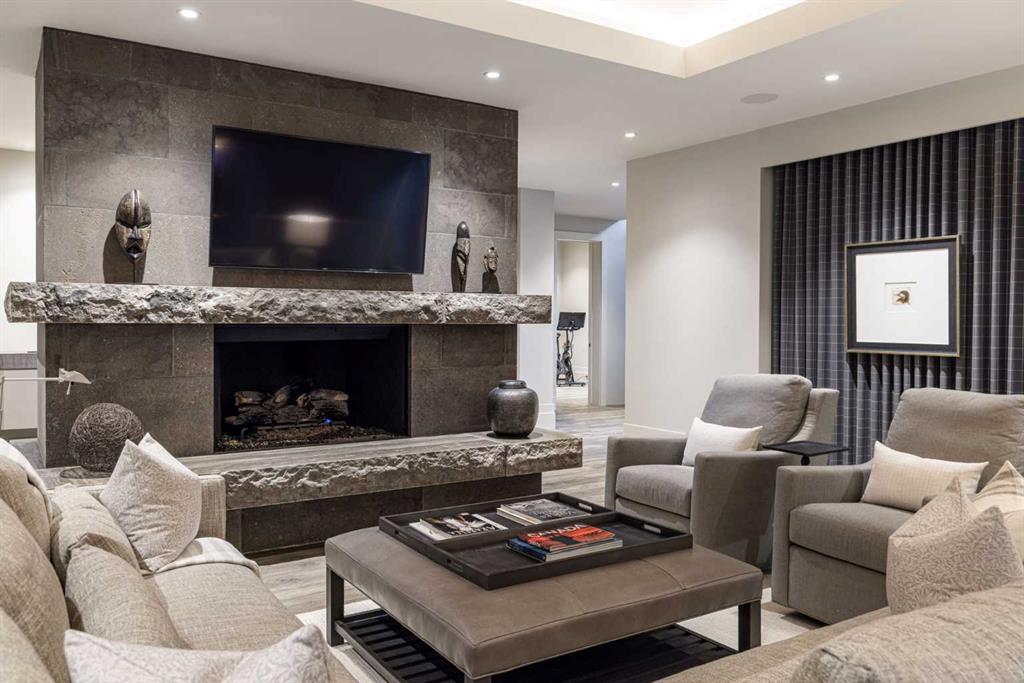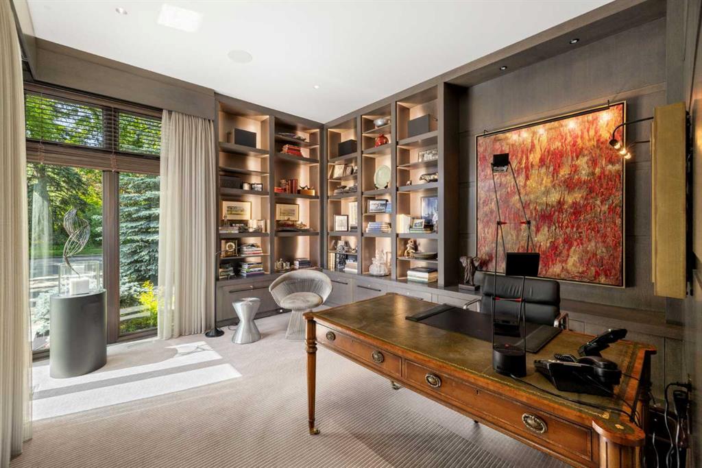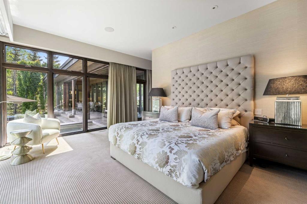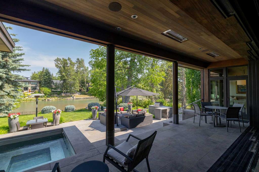 A rare offering where modern architecture & meticulous execution meet on one of Elbow Park’s most prized riverfront lots. Situated on a coveted tree-lined street steps from river pathways, parks, top schools, vibrant restaurants & the downtown core, this is a once-in-a-lifetime opportunity to own one of Calgary’s most architecturally significant homes—a perfect harmony of design, craftsmanship, & location.Thoughtfully designed by award winning architect Mark Burkart and custom built by Mission Custom Homes, this extraordinary residence offers over 6,600 sq ft of refined living space. The design is quietly sophisticated, blending natural materials & light-filled spaces to create a home of remarkable beauty & comfort. The exterior, clad in warm silver-to-charcoal Saint Marc limestone, copper roofing, and Meranti hardwood soffits lends a sense of permanence and quiet strength evoking the spirit of a small modern museum. A front courtyard with a tranquil reflecting pool invites you into the home, while the rear terrace creates a serene outdoor retreat overlooking the Elbow River. Inside, elegant proportions and rich finishes create an atmosphere of understated luxury. Soaring 19' ceilings define the great room, where a monumental limestone fireplace serves as a stunning focal point. A 30' retractable glass wall opens entirely to a heated limestone terrace with phantom screens, infrared heaters, & built-in speakers, perfect for year-round enjoyment and effortless indoor-outdoor living. The chef’s kitchen is both functional & striking, featuring custom tigerwood cabinetry, a cantilevered 13’ Caesarstone island, and top-of-the-line Gaggenau and Miele appliances. A walk-in pantry, wet bar, & seamless flow to the dining area make the space ideal for entertaining or everyday living. The primary suite is a private riverside sanctuary with floor-to-ceiling windows, silk wall coverings, & heated marble floors. Its spa-caliber ensuite offers Bianca Carrera marble, a steam shower, a freestanding tub & a walk-in closet with custom cabinetry. Two exceptional home offices, a beautifully appointed laundry room, & an exquisite powder room complete the main floor. The lower level continues the home’s thoughtful design with a floating oak staircase, spacious family/rec room anchored by a stunning four-sided limestone fireplace, three bedrooms each with a full ensuite, a professional-grade gym, a custom wine room & a 12-foot wet bar. Radiant in-floor heating & elevator access ensure comfort & convenience on every level. Advanced mechanical and smart home systems provide comfort & security, Crestron AV, Lutron lighting, triple-pane Lowen windows, a heated driveway, Viessmann boilers, a water filtration system, & backup generator. Professionally landscaped, the outdoor living spaces include three distinct patio areas: a limestone-encased hot tub, a rundle stone firepit patio surrounded by lush perennial gardens & built-in BBQ area. More than a home, this residence is about a lifestyle.