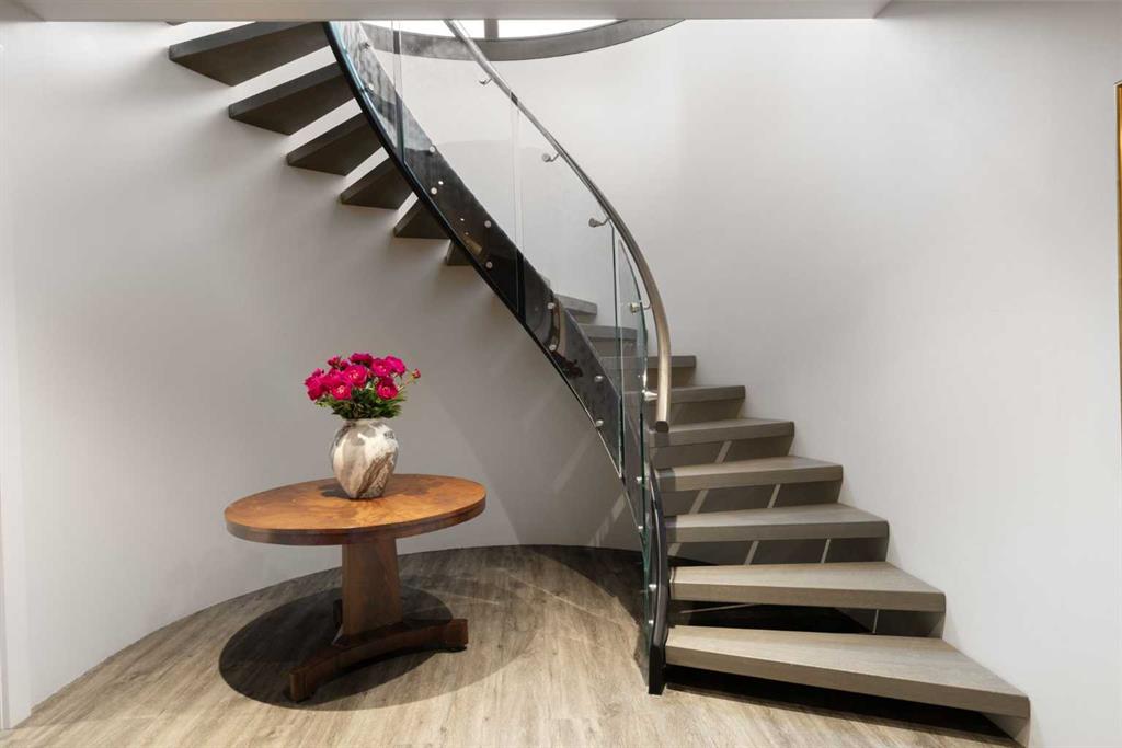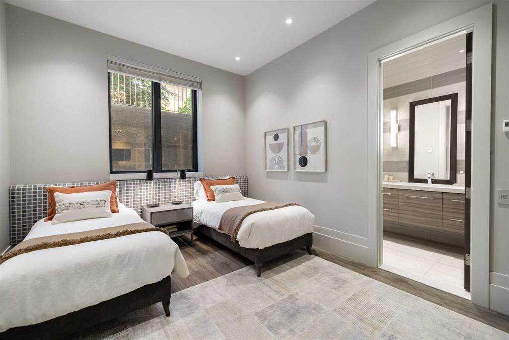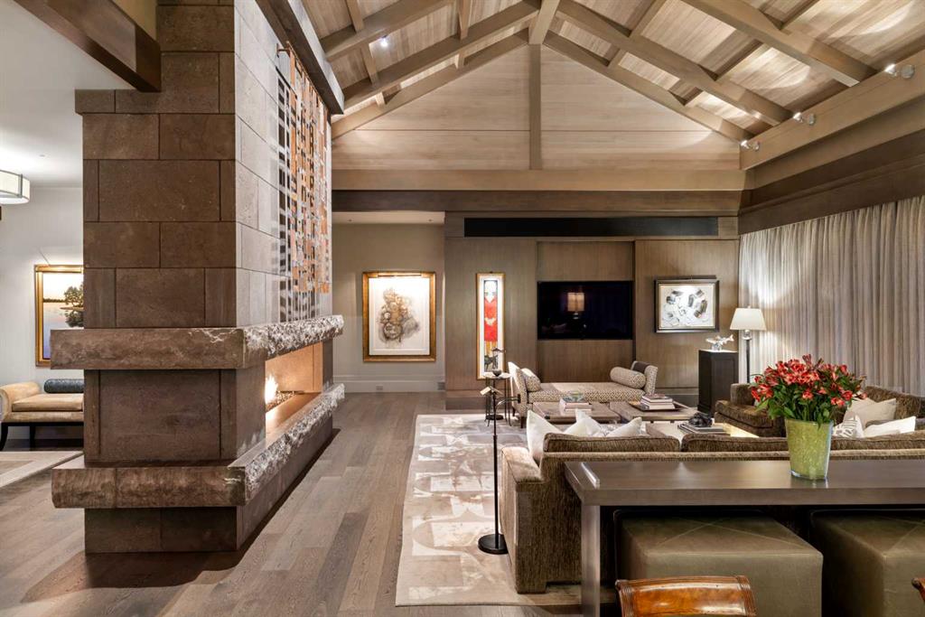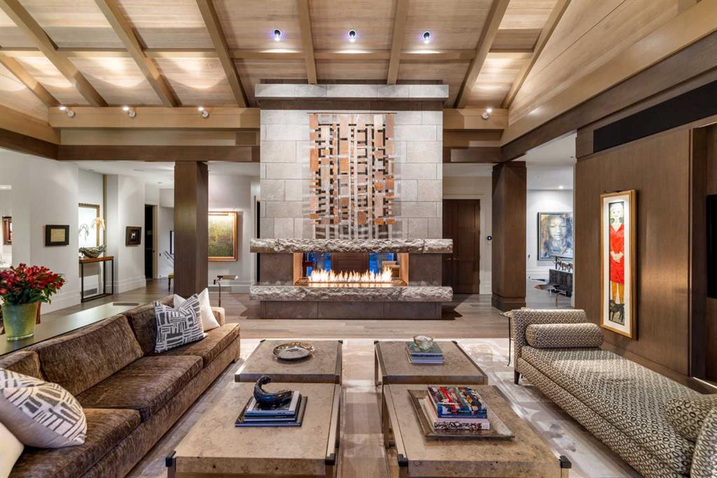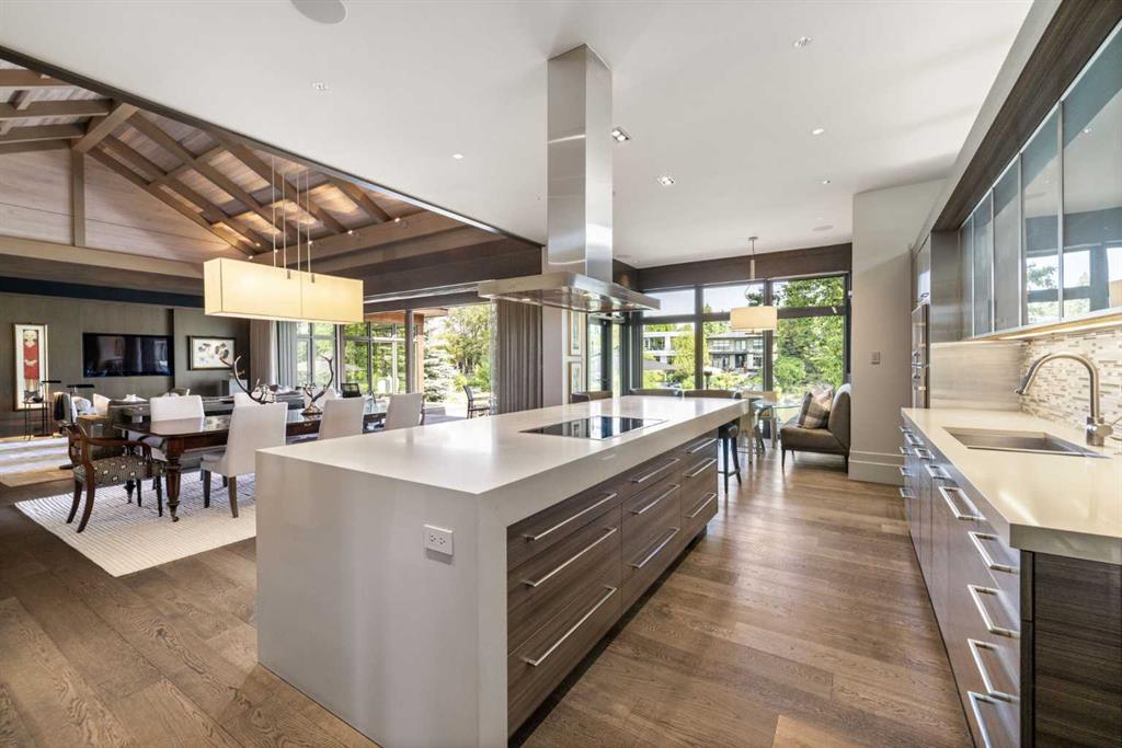 A rare offering where modern architecture & meticulous execution meet on one of Elbow Park’s most prized riverfront lots. Situated on a coveted tree-lined street steps from river pathways, parks, top schools, vibrant restaurants & the downtown core, this is a once-in-a-lifetime opportunity to own one of Calgary’s most architecturally significant homes—a perfect harmony of design, craftsmanship, & location.Thoughtfully designed by award winning architect Mark Burkart and custom built by Mission Custom Homes, this extraordinary residence offers over 6,600 sq ft of refined living space. The design is quietly sophisticated, blending natural materials & light-filled spaces to create a home of remarkable beauty & comfort. The exterior, clad in warm silver-to-charcoal Saint Marc limestone, copper roofing, and Meranti hardwood soffits lends a sense of permanence and quiet strength evoking the spirit of a small modern museum. A front courtyard with a tranquil reflecting pool invites you into the home, while the rear terrace creates a serene outdoor retreat overlooking the Elbow River. Inside, elegant proportions and rich finishes create an atmosphere of understated luxury. Soaring 19' ceilings define the great room, where a monumental limestone fireplace serves as a stunning focal point. A 30' retractable glass wall opens entirely to a heated limestone terrace with phantom screens, infrared heaters, & built-in speakers, perfect for year-round enjoyment and effortless indoor-outdoor living. The chef’s kitchen is both functional & striking, featuring custom tigerwood cabinetry, a cantilevered 13’ Caesarstone island, and top-of-the-line Gaggenau and Miele appliances. A walk-in pantry, wet bar, & seamless flow to the dining area make the space ideal for entertaining or everyday living. The primary suite is a private riverside sanctuary with floor-to-ceiling windows, silk wall coverings, & heated marble floors. Its spa-caliber ensuite offers Bianca Carrera marble, a steam shower, a freestanding tub & a walk-in closet with custom cabinetry. Two exceptional home offices, a beautifully appointed laundry room, & an exquisite powder room complete the main floor. The lower level continues the home’s thoughtful design with a floating oak staircase, spacious family/rec room anchored by a stunning four-sided limestone fireplace, three bedrooms each with a full ensuite, a professional-grade gym, a custom wine room & a 12-foot wet bar. Radiant in-floor heating & elevator access ensure comfort & convenience on every level. Advanced mechanical and smart home systems provide comfort & security, Crestron AV, Lutron lighting, triple-pane Lowen windows, a heated driveway, Viessmann boilers, a water filtration system, & backup generator. Professionally landscaped, the outdoor living spaces include three distinct patio areas: a limestone-encased hot tub, a rundle stone firepit patio surrounded by lush perennial gardens & built-in BBQ area. More than a home, this residence is about a lifestyle.