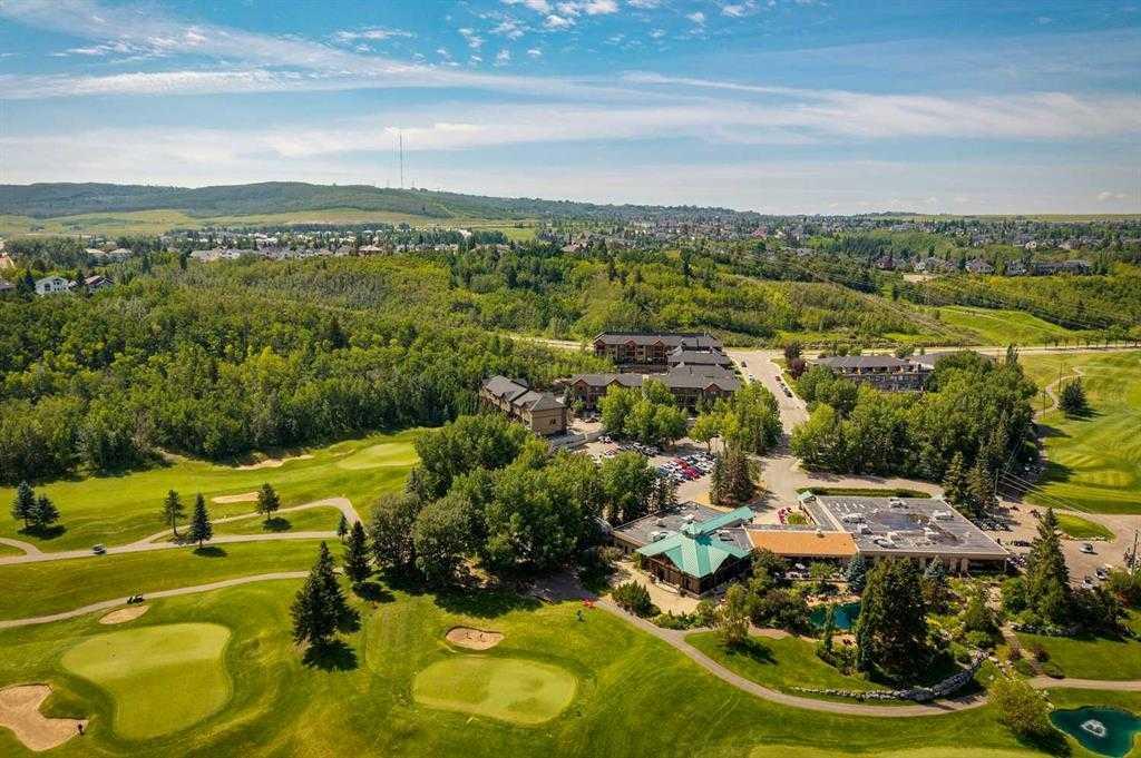 Welcome to this upscale rare 3 BEDROOM townhouse adjacent to the Valley Ridge golf course and within walking distance to the Bow River, this exquisite gem feels more like life in the country than that found in the bustling city of Calgary. This property shows 10/10 and current owners have described it as PRIVATE EACEFUL and QUIET. This welcoming townhouse greets you with a cozy basement, 2-piece bath and direct access to the double garage. Tailored for an active adult lifestyle ESTATES OF VALLEY RIDGE is +18. In addition to 9' ceilings and GLEAMING HARDWOOD throughout the MAIN FLOOR, an OPEN CONCEPT layout connects the living - dining room and kitchen. The kitchen is a GOURMET'S DREAM with tan quartz countertops, abundant cabinets, double sink, high-end STAINLESS-STEEL appliances with gas stove. The spacious dining area can easily accommodate a number of guests. The corner GAS FIREPLACE in the living room adds warmth and charm to the space. Just off the living room is a PRIVATE BALCONY, adding an outdoor living space of over 200 square feet, complete with BBQ gas line. Enjoy dining outdoors or just enjoy the serene GOLF COURSE and green space views. A 2-piece bathroom completes this floor. The UPPER LEVEL as a LARGE PRIMARY BEDROOM and sizeable WALK -IN CLOSET. It also includes 2 additional bedrooms for family and guests. Conveniently located on this level is the LAUNDERY/STORAGE ROOM with front loading washer and dryer, shelving and ample storage space. On the LOWER LEVEL a private COVERED PATIO overlooks the club house with easy access to the First Tee or walking path. The main entrance into the property is on this level, as well as access to the spacious DOUBLE CAR ATTACHED GARAGE. There is also space for 2 vehicles on the parking pad, as well there is visitor parking adjacent. A large versatile RECREATION/FLEX ROOM is just off the entrance and has been used as an exercise and TV room. There is a 2-piece bathroom and utility room on this floor. This home has been LOVINGLY CARED for and has been enjoyed by these owners. The LOCATION is one of the best in the city! Easy access to Highway 1 (2min) and approximate travel time Canmore (45min); city center (25min); bus transit (3min); Tuscany LRT (11 min); Stoney Trail (3 min); YYC airport (30 min). Valley Ridge is a STRIKINGLY BEAUTIFUL COMMINITTY with over 50% GREEN SPACE, wildlife and many outdoor activities to enjoy. Please contact your REALTOR and arrange a viewing of this gorgeous townhouse. " Sellers are open to selling all the furniture if needed" . It also comes with a new AC & Hot water tank.