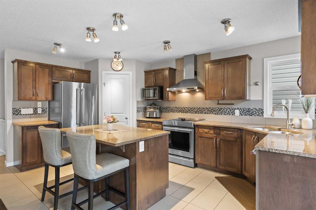 Air Conditioning | Hot Tub | Huge Backyard | Double Attached Garage | Granite Countertops | Stainless Steel Appliances | Pantry | Bonus Room | Gas Fireplace | Large Storage Shed | Welcome to 74 Hillcrest Street SW in the established, family-friendly community of Hillcrest in Airdrie. Offering over 1,880 sq ft above grade and an exceptionally functional layout, this home delivers the space, light, and outdoor living everyone is looking for. The main floor opens with a generous foyer and flows naturally into an open-concept living space designed for everyday practicality. The kitchen is anchored by granite countertops, a large central island, stainless steel appliances, a chimney-style range hood, a corner sink framed by windows, and a walk-in pantry. Ample cabinetry ensures storage is never an issue. The adjacent dining nook is surrounded by windows, creating a bright and welcoming space that connects directly to the full-width deck. The large living room, a main-floor laundry, and a powder room complete this level. Upstairs, the 18 x 13 bonus room stands out with oversized windows that fill the space with natural light, making it ideal for a media room, play area, or second family lounge. The primary bedroom offers a walk-in closet and a private 5-piece ensuite with soaker tub and separate shower. Two additional bedrooms and a full bathroom complete the upper level. The backyard is a major highlight. Larger than many comparable lots, it offers a sizable deck, hot tub, storage shed, and ample fenced yard space for kids, pets, and entertaining. Central air conditioning provides added comfort through the summer months. Hillcrest is consistently sought after for its quiet streets, parks, playgrounds, and walking paths. Schools and everyday amenities are nearby, and quick access to 8 Street SW and Yankee Valley Boulevard connects easily to Highway 2 for a smooth commute into Calgary. You are also well-positioned for westbound travel toward Cochrane, Canmore, and the Rocky Mountains, making weekend escapes part of your lifestyle. A well-designed home in a strong community, offering space, comfort, and long-term value.