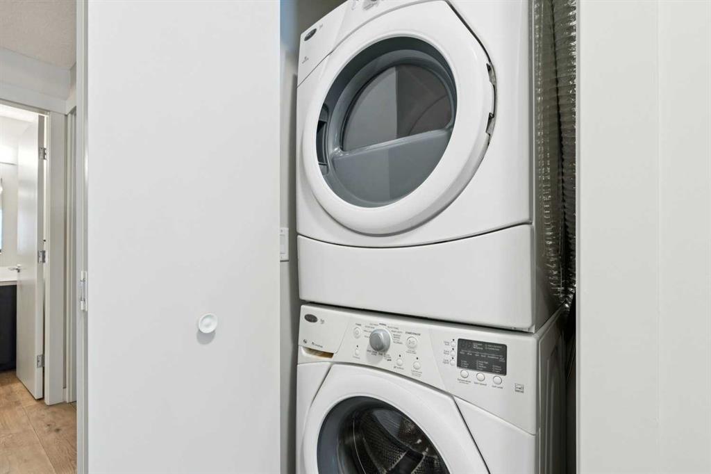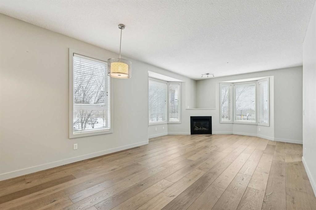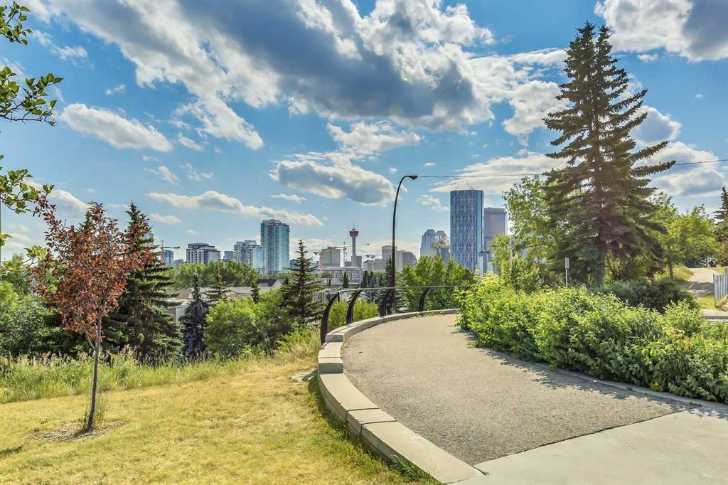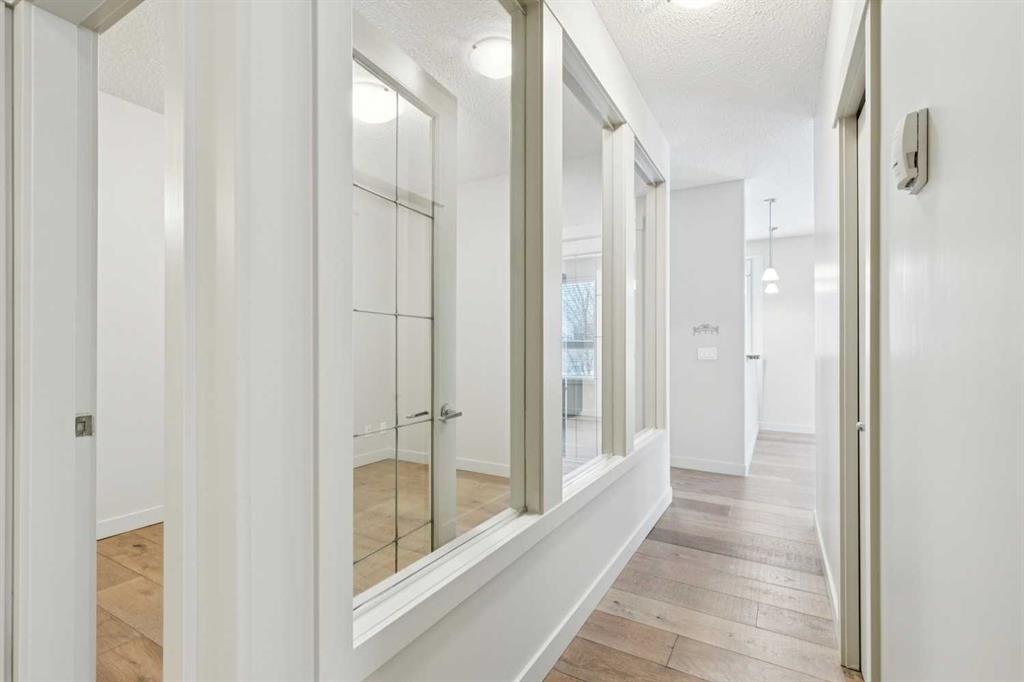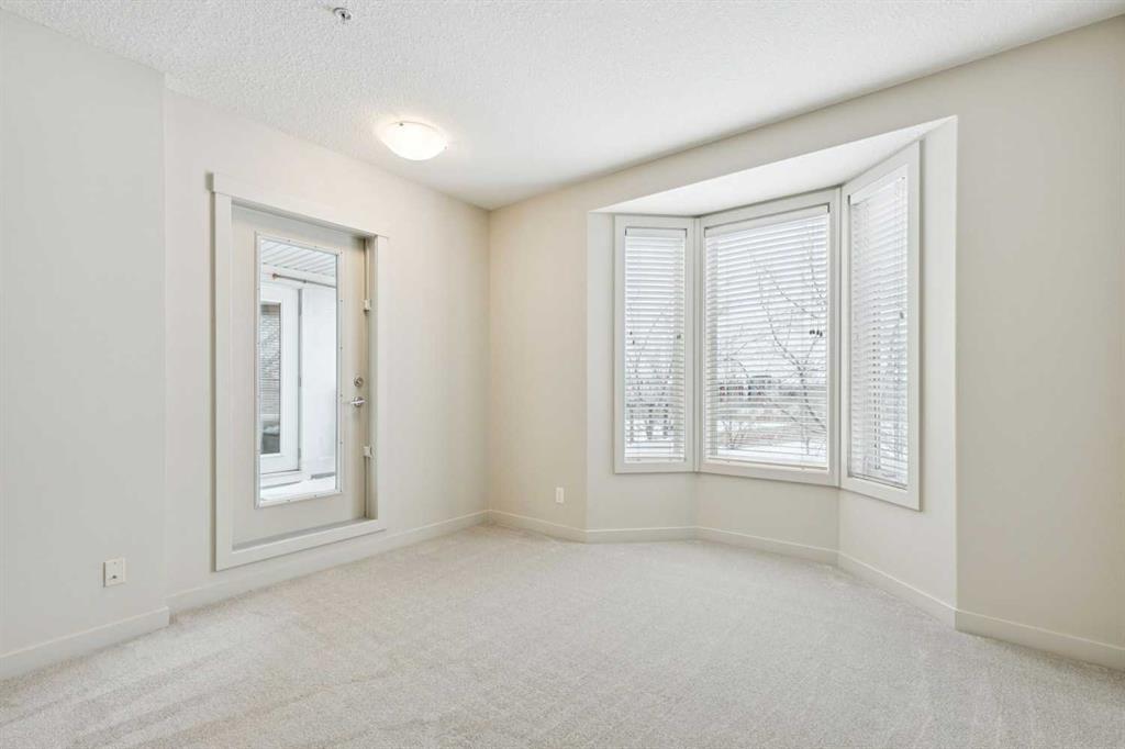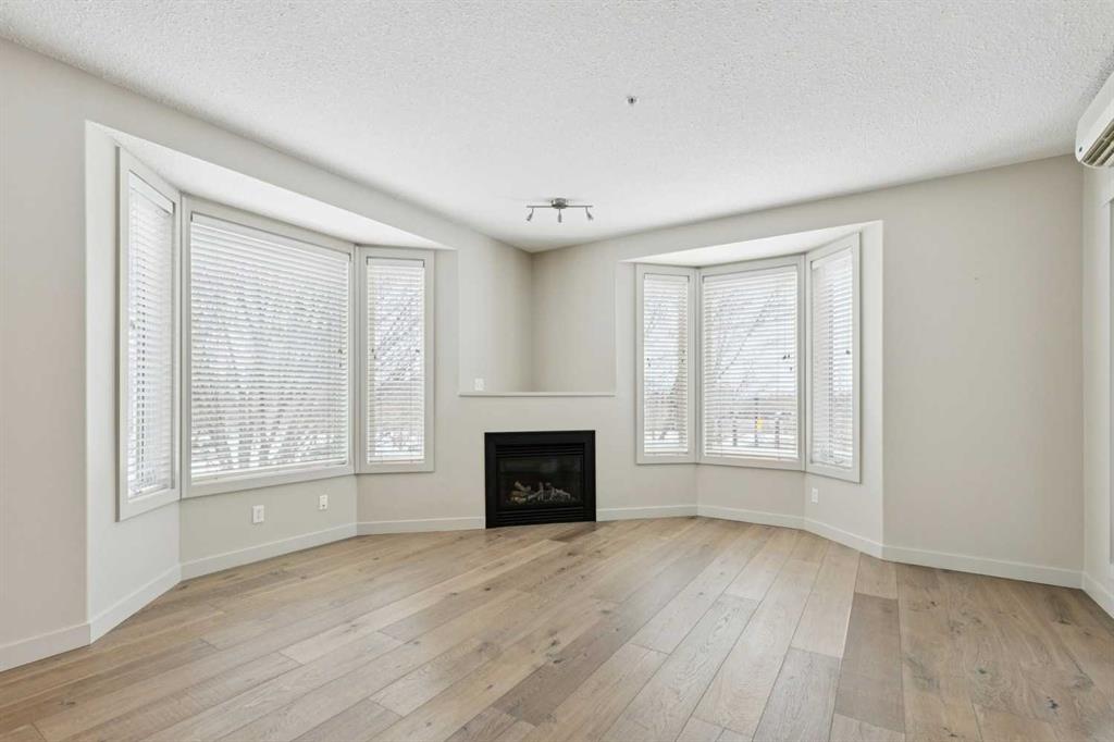 Perfectly positioned in the heart of Bridgeland, this two-bedroom, two-bathroom corner unit with a dedicated office/den offers the ideal blend of space, light, and lifestyle. With south and east exposure, the home is filled with natural light throughout the day, and directly across the street, Murdoch Park offers walking trails, a playground, and beautiful green space right at your doorstep. Inside, the bright living room is anchored by a cozy gas fireplace and framed by two bay windows, creating an airy, inviting atmosphere. The spacious dining area easily accommodates gatherings, a rare find in condo living. The kitchen features neutral finishes, generous counter space, abundant cabinetry, stainless steel appliances, a charming bay window, and a convenient island with a breakfast bar. A separate home office/den enclosed with glass doors and windows provides the perfect work-from-home setup, reading nook, or even space for your Peloton. The primary bedroom includes a bay window, dual closets, and a private ensuite complete with double sinks, a soaker tub, and a separate shower. A well-sized second bedroom and full bathroom offer flexibility for guests or family. Additional features include in-suite laundry, air conditioning, wide plank engineered hardwood flooring, new carpet in the bedrooms, and a timeless neutral palette throughout. One titled underground parking stall and a storage locker are included. Just steps to Bridgeland’s beloved markets, cafés, and restaurants, and minutes to downtown, the Bow River pathways, and St. Patrick’s Island, this home delivers vibrant, walkable, inner-city living at its best.