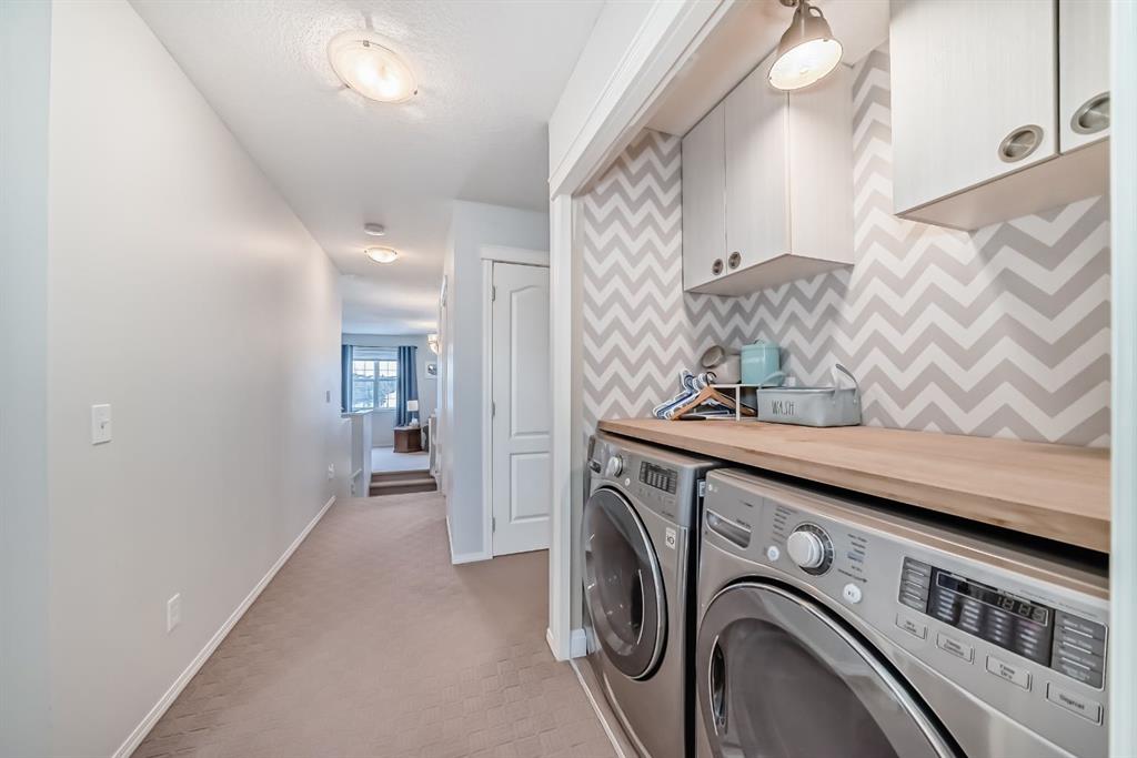 Step outside to your private backyard retreat, featuring a full width two tier deck perfect for summer entertaining, along with a lower patio firepit area, an inviting space to relax and enjoy Calgary evenings. The yard is fully fenced and landscaped, offering privacy and room for family activities.