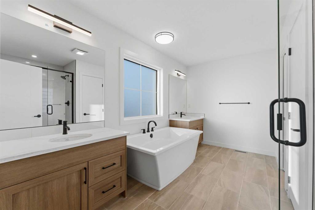 Welcome to luxury and convenience built by Vesta Properties - in the heart of Airdrie’s award-winning community of Cooper’s Crossing. This brand-new beautifully crafted interior-unit townhome combines everyday comfort with smart design. Step inside to discover a bright, functional main level that includes a stylish gourmet kitchen with an oversized island and stainless steel appliances, a cozy family room. Upstairs, a sun-soaked bonus room offers the perfect space to unwind, work from home, or enjoy family time. Just off the bonus area, you’ll find two additional bedrooms, a full bathroom, and a convenient upstairs laundry space ( No washer and dryer in unit). Also you will find your primary bedroom, which is a retreat complete with vaulted ceilings and a spa-inspired ensuite. Enjoy the added luxury of 9-foot ceilings on both the main floor and the basement, creating a spacious and airy atmosphere throughout. Summer evenings are made better on your covered west-facing balcony, with a gas line for your BBQ and views of the landscaped green space, offering a peaceful, family-friendly backdrop. Additional highlights include a double attached garage, modern contemporary exteriors, and fully landscaped yards designed for ease and curb appeal. And here’s the best part... These homes offer a true Lock & Leave lifestyle—experience it at its best! Whether you're off traveling, managing a busy career, or simply done with yard work and snow removal, you can lock the door and go. No stress. No fuss. Just effortless, carefree living. Book your exclusive tour today!