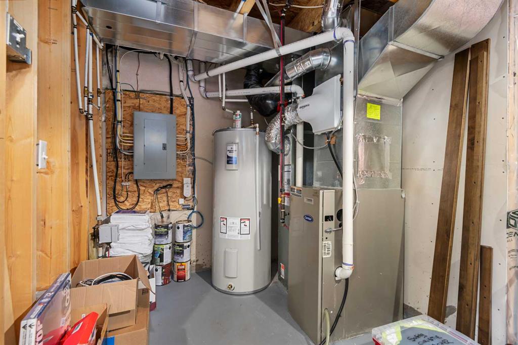 Stylish, spacious, and move-in ready welcome to your modern sanctuary. Perfectly situated in the highly desired community of Williamstown, this home blends sleek design elements with everyday functionality across almost 1500 sq ft of developed space. tasteful modern upgrades, including a new fridge and stove, a new oversized 76-gallon hot water tank, a two-year-old washer/dryer and a new main motor on the furnace. From the moment you step inside, you're greeted by a flood of natural light through oversized windows, accentuating the open layout and stylish finishes. The main floor is all about connection and comfort. The inviting living room, anchored by a cozy gas fireplace, is made for everything from lazy Sundays to lively gatherings. Rich laminate flooring adds a contemporary touch, while the expansive kitchen steals the show with a statement island large enough for the whole family, complete with sleek black & stainless steel appliances that tie the space together beautifully. A generous dining area flows seamlessly to the backyard, where a sun-drenched patio and fully fenced, NW-facing yard invite you to enjoy morning coffees, summer BBQs, and effortless outdoor living. At the rear, you'll also find a massively oversized parking pad for year-round convenience. Upstairs, the primary suite offers a peaceful retreat with its own elegant ensuite. Two additional bedrooms and a full bathroom provide plenty of room for family, guests, or a home office setup. The unfinished basement is the perfect place for all your extra storage or your blank canvas, ready to be developed with a bathroom rough-in and two large windows. Located in the vibrant, family-friendly community of Williamstown, you're just steps from parks, playgrounds, walking and biking paths, schools, transit, and all the shopping and amenities that NW Airdrie has to offer. Book your private viewing today while it lasts!