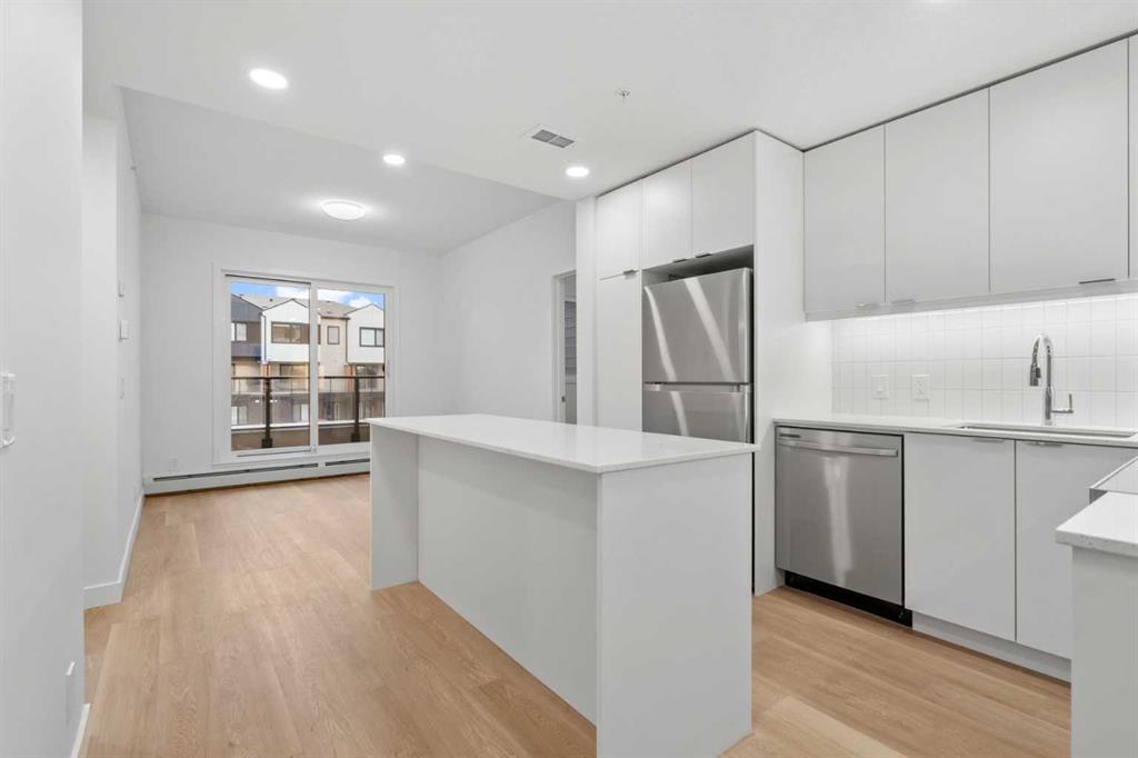 This brand-new 2 bedroom, 2 bathroom condo offers a smart and functional layout with 772 sq ft of well-designed living space and modern finishes throughout. The kitchen is located at the front of the home and features a large island, stainless steel appliances, and ample cabinetry for storage. The open-concept design flows seamlessly into the living area at the back of the home, where you’ll find access to the balcony—ideal for relaxing, entertaining, or enjoying summer evenings.