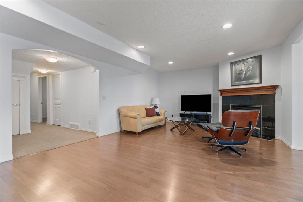 Welcome to 153 Crestridge Way SW, a beautifully appointed 2-storey home with a fully developed walkout basement, ideally located in the sought-after community of Crestmont. Offering 5 bedrooms and 3.5 bathrooms, this home strikes an exceptional balance between thoughtful design, abundant natural light, and breathtaking, unobstructed views of the Rocky Mountains and river valley. With 2,526 sq ft above grade and an additional 1,302 sq ft of professionally developed living space in the walkout basement, the home provides over 3,800 sq ft of versatile and well-designed family living. The main level makes an immediate impression as you step inside from the east-facing front porch, where a spacious foyer, open-to-above staircase, rich dark laminate flooring, and expansive windows frame the surrounding landscape.At the heart of the home is a chef-inspired kitchen, featuring double islands (one granite), a granite servery, extensive cabinetry, and a large walk-through pantry. A formal dining area and a bright breakfast nook with access to the upper deck create the perfect setting for everyday living, entertaining, sunset views, or summer barbecues. The living room is warm and inviting, centered around a gas fireplace with a granite hearth and custom wood mantel. A front flex room offers ideal space for a home office or library, while a spacious mudroom and powder room complete the main level. Upstairs, the primary suite is a true retreat, showcasing sweeping mountain views, dual walk-in closets, and a luxurious spa-style ensuite with dual vanities, an oversized shower, and a deep soaker tub. Two additional generously sized bedrooms, a full 4-piece bathroom, and a convenient upper-level laundry room provide comfort and everyday practicality. The walkout lower level expands the living space with a large recreation room anchored by a second gas fireplace with a granite hearth, a stylish wet bar, and multiple zones for media, games, fitness, or hobbies. Two additional bedrooms and a full bathroom offer flexible options for teens, guests, extended family, or home-based work. Large windows and direct patio access keep this level bright and welcoming year-round. Outside, the beautifully landscaped yard features mature trees, established perennials, and a lower garden area with rhubarb, raspberries, strawberries, and a variety of herbs. Enjoy summer evenings on the covered patio or your morning coffee on the charming front porch. Additional highlights include a double attached garage, central A/C, central vacuum, walkout access, and a spacious upper deck with glass railing designed to maximize the incredible views. Situated on a quiet street just minutes from the Crestmont Community Centre, water park, playgrounds, walking paths, WinSport, COP, and with quick access to the new Stoney Trail interchange, this home offers an easy commute and a seamless gateway to the mountains. This is more than a home — it’s a lifestyle.
