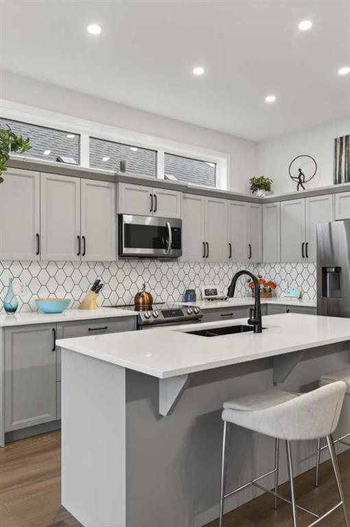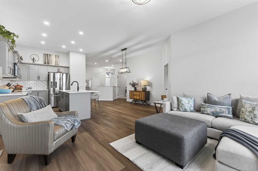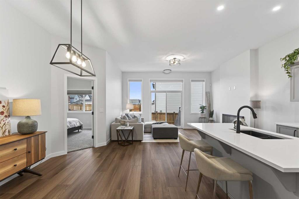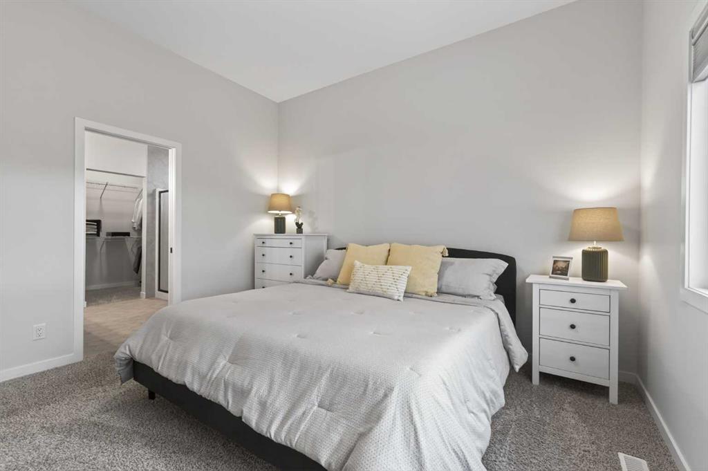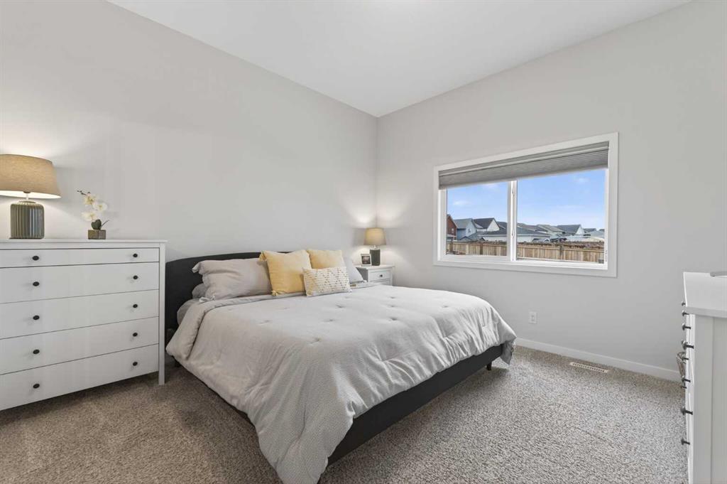 Welcome to 125 Amery Crescent - an immaculate modern bungalow in the sought-after Vista Crossing neighbourhood of Crossfield with quick access to Airdrie and Calgary. This beautifully designed home offers a comfortable and thoughtful design, perfect for both everyday living and entertaining. Showing like-new throughout, this stunning move-in ready home is beautiful both inside and out with professional landscaping completing the west-facing backyard. Stepping inside, you’ll be greeted by an open-concept layout that seamlessly connects the main living areas with soaring ceilings and a bright living space all year round. Large windows flood the space with natural light, highlighting the bright and airy feel throughout. The timeless kitchen is complete with grey shaker cabinetry and white quartz countertops with a large central island that provides additional seating space. The kitchen opens to the main living room and dining areas - creating the perfect space for everyday living and entertaining. A central fireplace with TV hook-ups anchors the main living area with a wall of windows and patio doors opening to the west-facing backyard. The spacious primary suite is a true retreat, complete with a luxurious four-piece ensuite including dual sinks with endless storage space and a walk-in shower with tile complete to the 10' ceilings. Completing the primary suite is a generous walk-in closet. A second well-sized bedroom spanning ~10'x12' and a full bathroom with soaker tub, as well as a laundry room complete the main level. Thoughtful details and warm neutral tones give the home a welcoming sense of elegance and provide the perfect single-level living space. The expansive basement is complete with bathroom rough-in and provides ample space for a future recreation room, bedroom, bathroom and storage area. Completing the home is a double attached garage that is fully drywalled with a finished floor - ensuring a clean and seamless living space throughout the entire home. Outdoors, enjoy a sunny west-facing yard perfect for summer barbecues or quiet evenings under the sky. The professionally landscaped exterior features a stone patio that spans the width of the property and overlooks the backyard with lighting features, 4-zone irrigation and a beautiful front entryway with flowering shrubs - offering a fully complete exterior. If the summer heat becomes too hot, the central A/C will keep you comfortable all summer long. This move-in ready home is immaculate both inside and out - presenting the perfect bungalow for those looking to downsize without compromise in quiet and charming Crossfield. *Virtual tour available upon request.