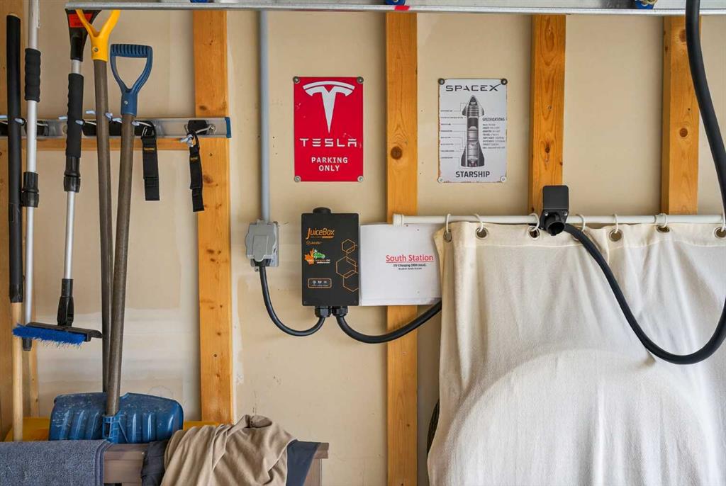 Thoughtfully upgraded for modern living, this home offers a new hot water tank (2024) for long-term efficiency, a Kinetico water filtration system, water softener, central vacuum with attachments, air conditioning, and a City of Calgary–approved 240V EV plug. The stone fireplace with mantel adds warmth and character to the living room, while upgraded carpet enhances comfort throughout.