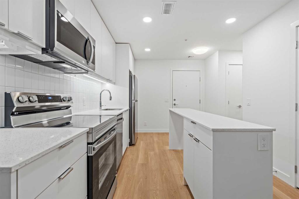 This brand-new 1 bedroom, 1 bathroom condo offers a smart and efficient layout with 560 sq ft of well-designed living space and modern finishes throughout. As you enter the home, the kitchen is located at the front on the left and features a functional island, stainless steel appliances, ample cabinetry, and convenient storage. The open-concept layout flows seamlessly toward the back of the home into the living area, where you’ll find access to a private balcony—perfect for relaxing or enjoying warm summer evenings.