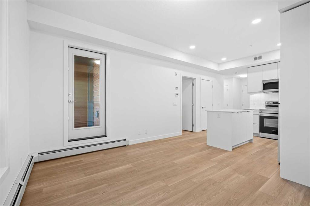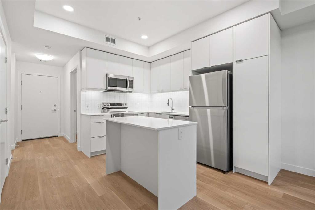 This brand-new 1 bedroom plus den, 1 bathroom condo offers a smart and functional layout with 614 sq ft of well-designed living space and modern finishes throughout. As you enter the home, you’ll find a versatile den located at the front left of the unit—ideal for a home office, workout space, or additional storage. The kitchen is centrally located within the home and features a large island, stainless steel appliances, ample cabinetry, and contemporary finishes, making it both stylish and practical.