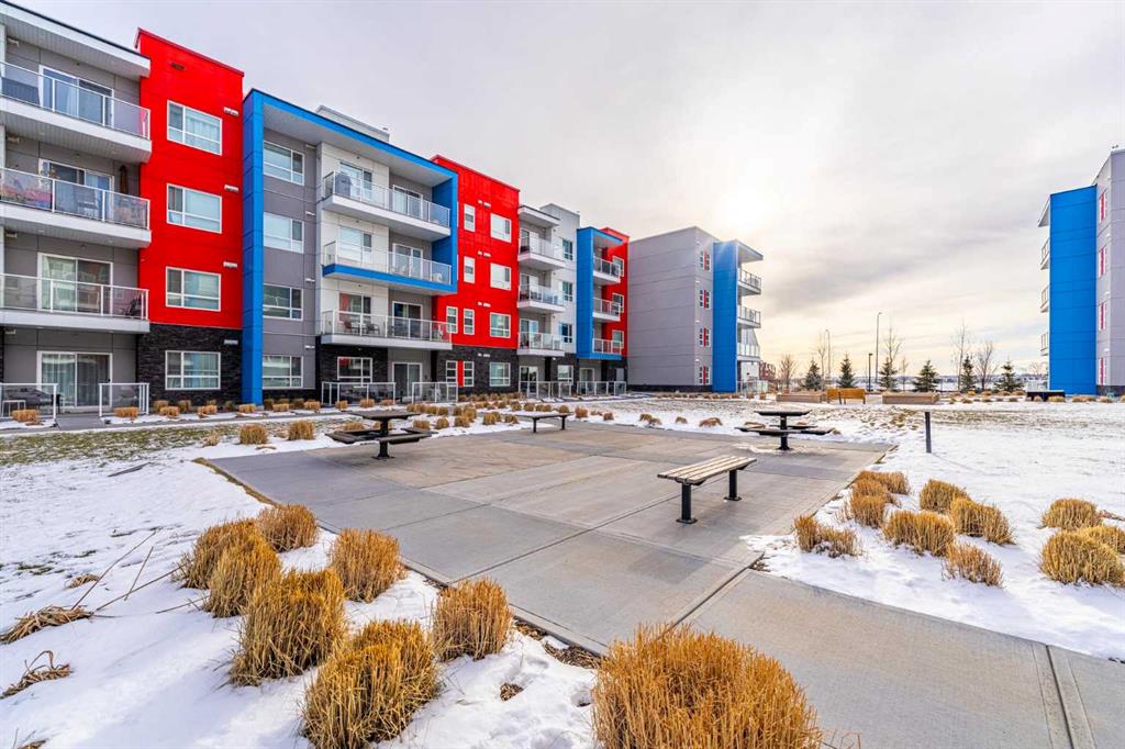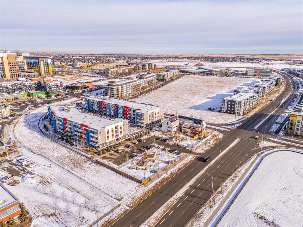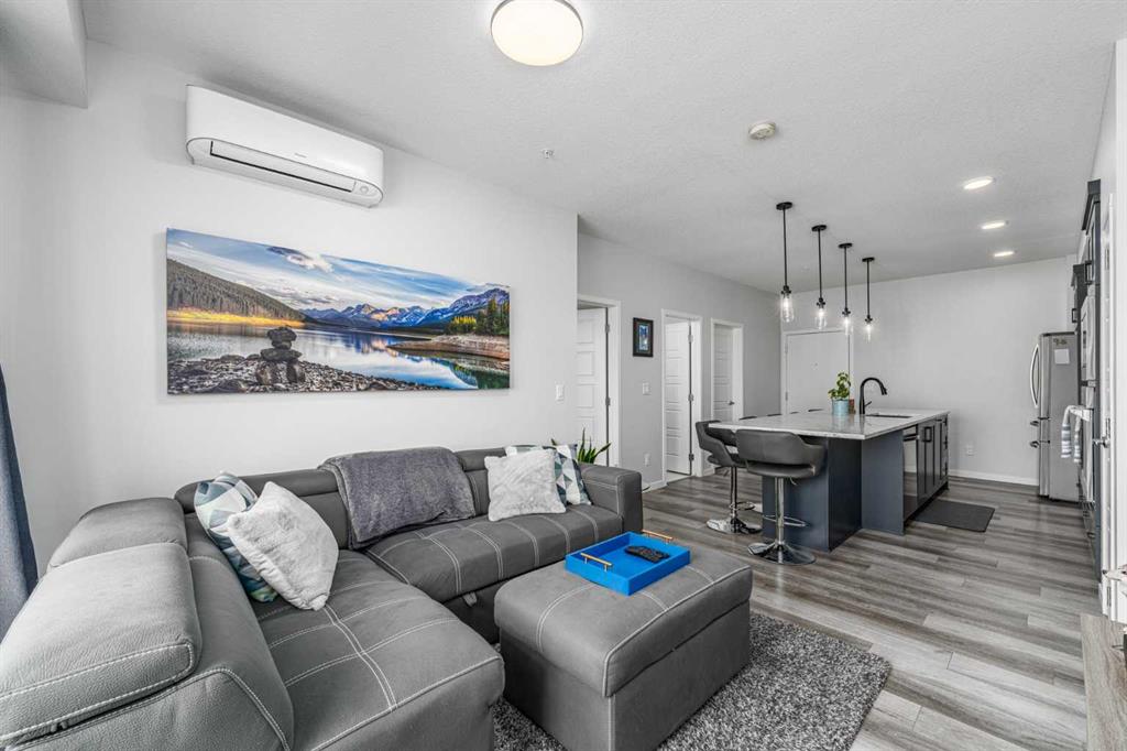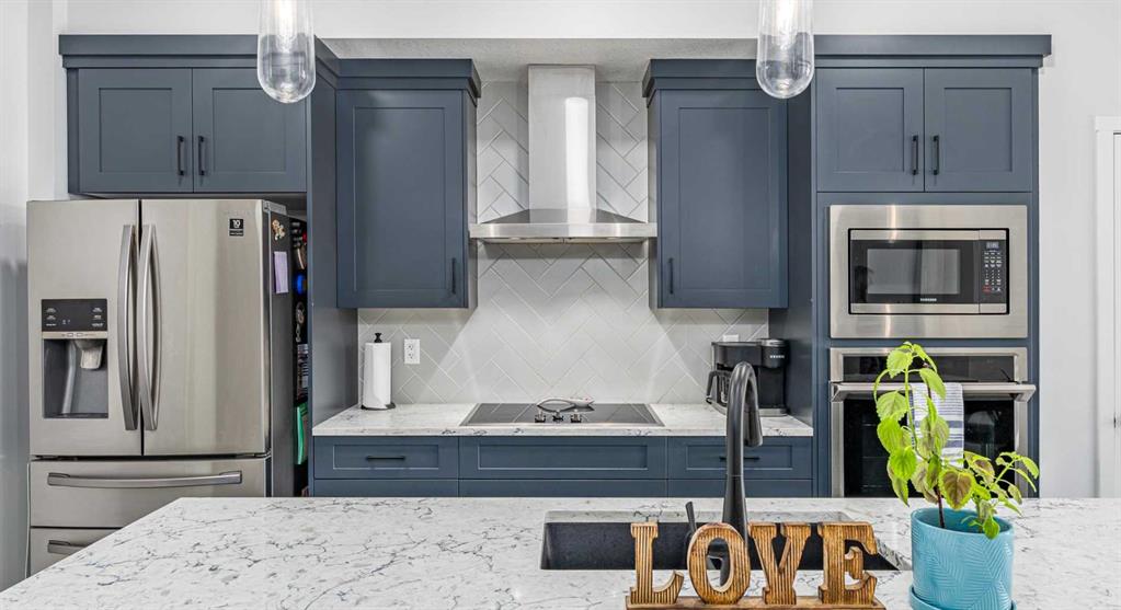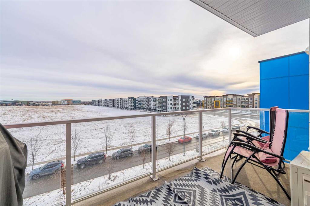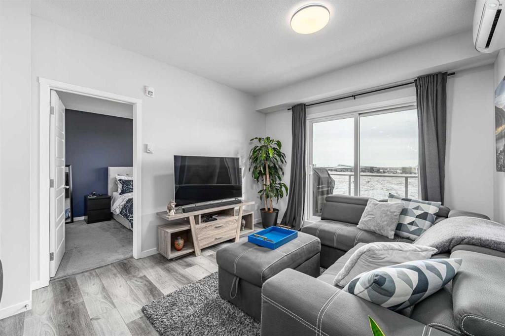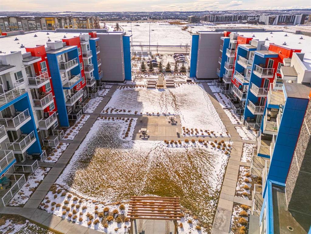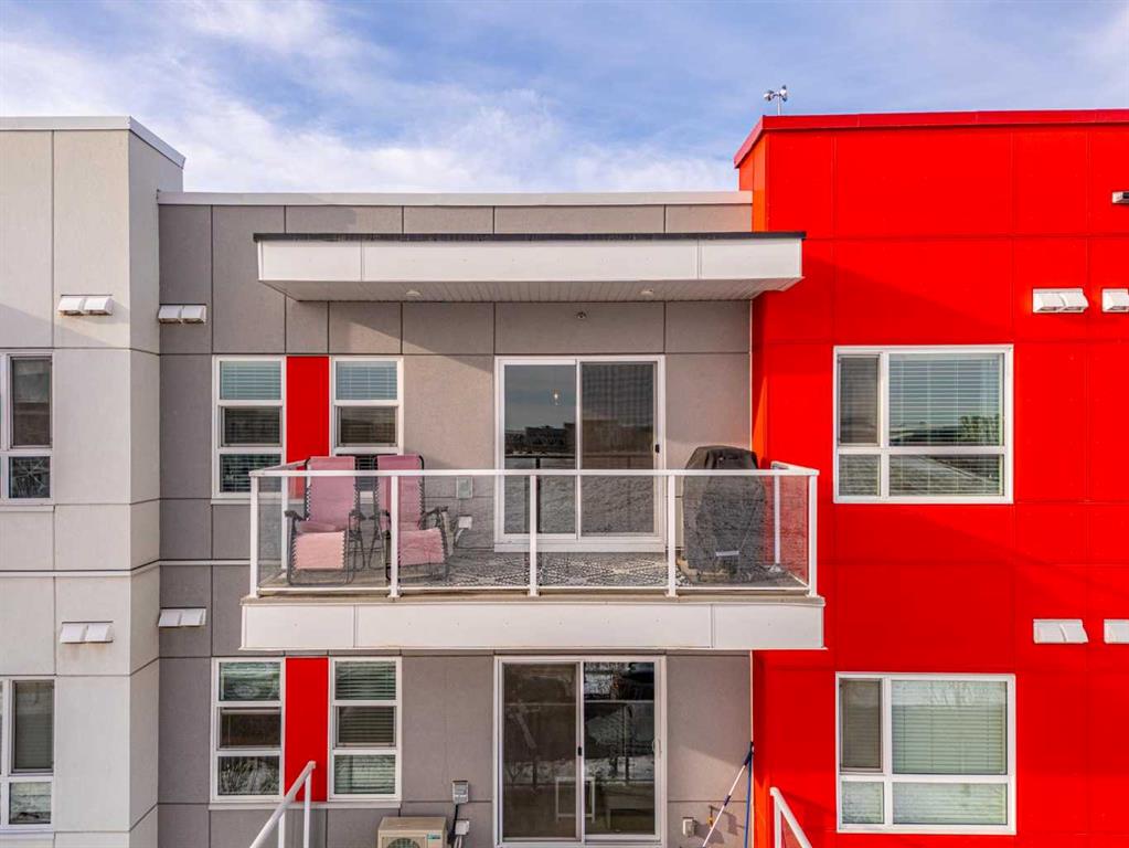 Welcome to this stunning top floor two bedroom, two bathroom condo, flooded with natural light and offering east facing views over an expansive green space. This home includes two titled underground parking stalls, wall unit air conditioning, and the quiet comfort of a well managed, low density complex. Inside, you’ll be impressed by the bright, open layout with high ceilings and a showstopping full length quartz island that comfortably seats six or more, perfect for hosting dinners or casual gatherings. The chef inspired kitchen features stainless steel appliances, an in wall oven, elegant herringbone tile backsplash, upgraded pull out cabinetry, and abundant storage to keep everything effortlessly organized. The spacious living area strikes the perfect balance. Large enough for entertaining yet cozy enough for relaxed evenings at home. The primary bedroom easily accommodates a king size bed and is complemented by a large walk-in closet and a stylish four piece ensuite featuring dual quartz vanities, modern finishes, and a beautiful herringbone tiled shower. A second bedroom offers excellent flexibility for guests or a home office, while an additional four piece bathroom is conveniently located just off the kitchen. Completing the interior is a generous in-suite laundry and storage room, large enough to double as a den or office space. Step outside through the sliding doors to your oversized balcony, where you can enjoy morning coffee and sunshine while overlooking the peaceful green space. At the heart of the complex is a unique central courtyard featuring pergolas, seating areas, manicured lawns, and community garden boxes, a true extension of your living space. The location is exceptional, just steps from South Health Campus, and surrounded by restaurants, cafés, shopping, entertainment, parks, and the world’s largest YMCA, offering swimming, fitness facilities, a public library, and learning programs. All moments from your door. Additional highlights include side by side titled underground parking, bike storage, low condo fees, and a quiet, pet-friendly (with board approval) complex with only 78 total units. This is a rare opportunity to enjoy style, space, and unbeatable convenience. A must see!