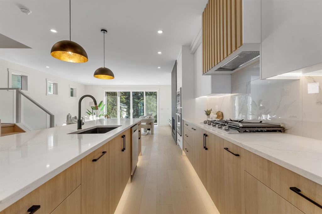Step inside this brand-new semi-detached home in HIGHLAND PARK and you’ll immediately notice the thoughtful design that blends everyday function with modern luxury. With 4 beds, 3.5 baths, and a rare ATTACHED GARAGE, this home offers more than just a place to live—it’s a lifestyle upgrade in one of Calgary’s most central communities. The entryway opens into a bright main floor filled with natural light from oversized windows. A private main floor office just inside is the perfect spot for productivity – with a peek-through window into the main floor and extra large window for tons of natural light. The powder room is tucked away nicely near the office for clients or guests, with designer lighting and quartz countertop. Anchored by a large island with seating, the kitchen will definitely impress! It offers an abundance of storage and workspace, with quartz countertops, a gas cooktop, built-in oven, and high-end stainless appliances, it’s built for both serious cooking and casual entertaining. The open layout connects seamlessly to the dining and living room area, making it easy to host friends for dinner or enjoy family meals without missing a beat. Transom windows overlook this open area for more natural light, and a sleek gas fireplace with full height custom grey tile surround guides your eye to the built-in media centre with wood slat feature wall. Upstairs you’ll find the primary retreat is a private escape, featuring a large walk-in closet and a spa-inspired ensuite with a deep soaker tub, double vanity, and tiled shower with STEAM SHOWER rough-in. Two additional bedrooms, each with their own WALK-IN CLOSETS, share a stylish 4-piece bathroom. An upstairs laundry room adds to the everyday functionality. The fully developed basement is all about versatility. There’s a spacious rec room complete with a WET BAR, R/I for a projector - ideal for movie nights, game day, or hosting guests. A fourth bedroom & full bathroom create a comfortable space for overnight visitors, older kids, or extended family. And thanks to the ATTACHED GARAGE, you’ll enjoy direct access into the basement, keeping you sheltered from the elements year-round with built-in cubbies & hooks for organization & convenience. Outside, a private SOUTH backyard with a deck & BBQ gas line extends your living space into the outdoors. Located in Highland Park, this home combines quiet residential living with incredible convenience. Confederation Park and its extensive pathways are nearby, offering the perfect setting for walks, runs, and family time. Local schools, playgrounds, and community amenities are within easy reach, and the central location makes commuting downtown or to the airport a breeze. Shopping, dining, and everyday essentials are minutes away along Centre Street and 16th Avenue.