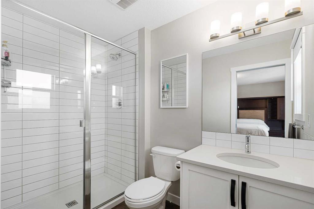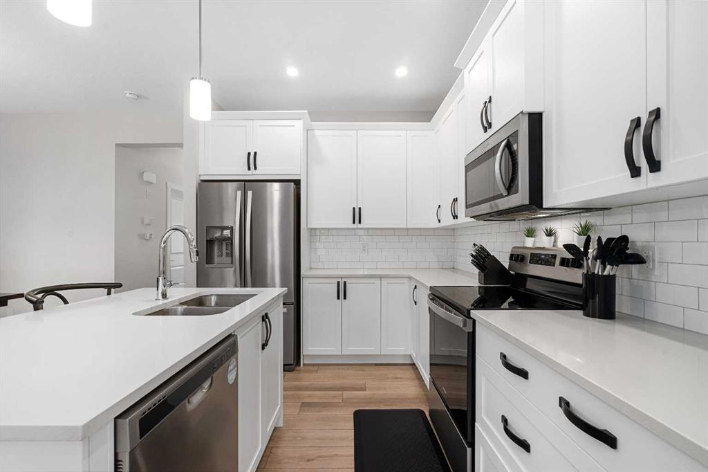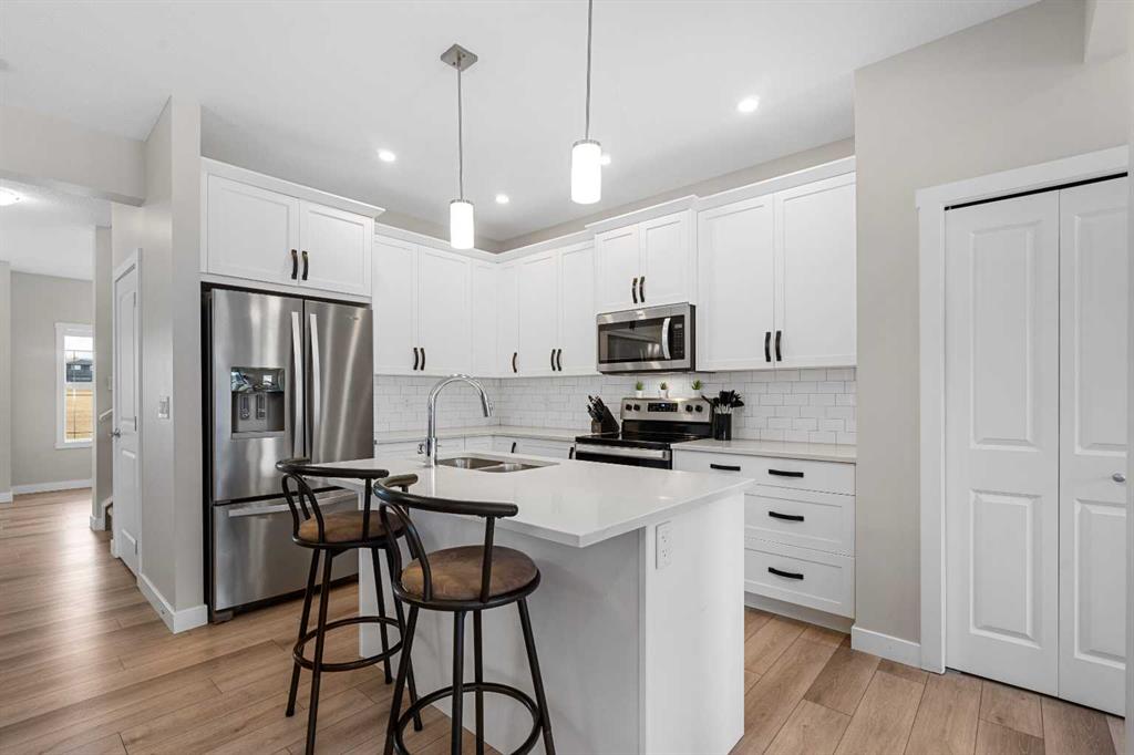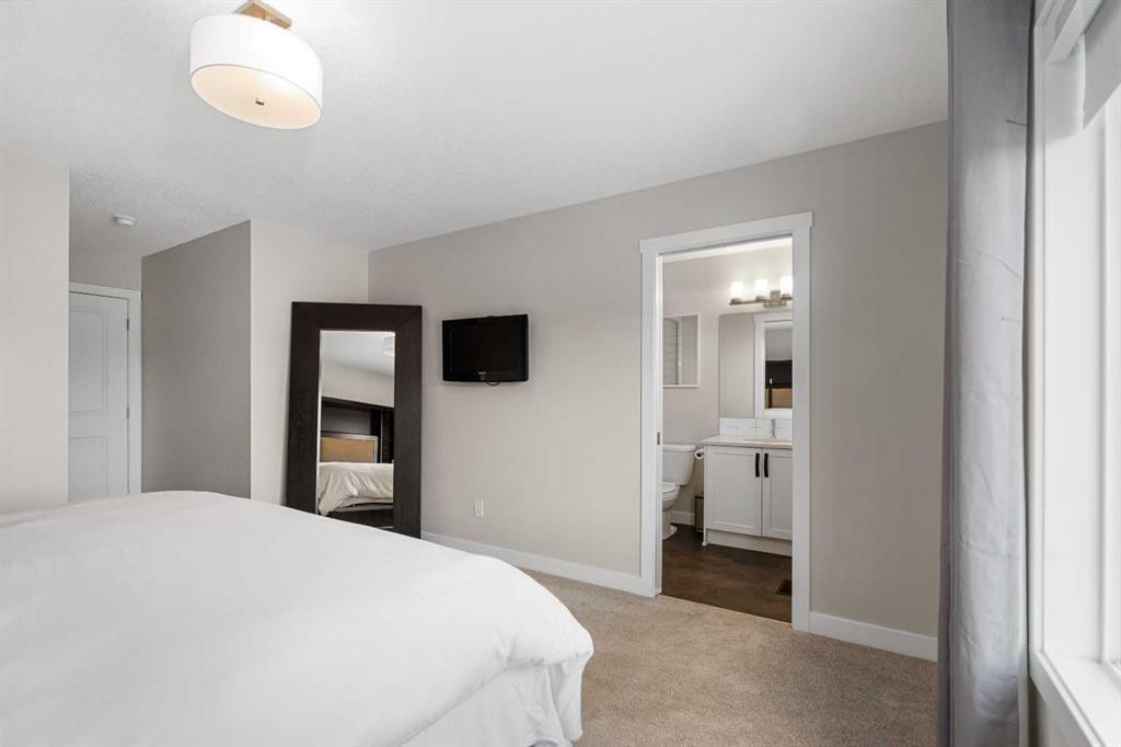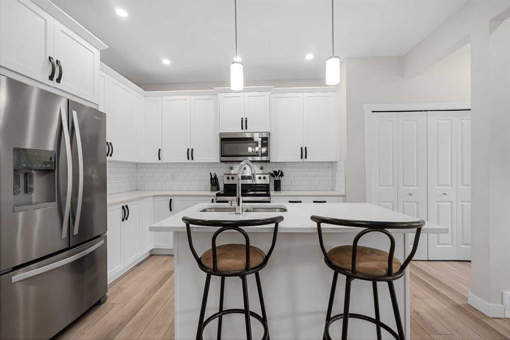 DIRECTLY ACROSS FROM GREENSPACE - FULLY FINISHED - NEW A/C - NEW GARAGE & BASEMENT Move-in ready and beautifully maintained, this stylish original-owner home delivers modern comfort and everyday functionality with nearly 2,500 sq. ft. of fully developed living space. Thoughtful upgrades enhance the home throughout, including air conditioning with a value of $7K in 2022, an extra-thick underlay for the basement carpet, a fully finished permitted basement completed in 2024 ($35K update), and a brick paver patio ideal for outdoor enjoyment, another $13K upgrade! Upon entry, you’re welcomed by an abundance of natural light from west-facing windows in the front side room, offering open views of the expansive green space directly across the street! Designed with connection in mind, the main floor features an inviting living room accented by rich vinyl plank flooring, while the impressive kitchen stands out with the center island perfect for gathering, quartz countertops, and stainless steel appliances that tie the space together seamlessly. The generous dining area flows directly to the backyard, where a sun-filled brick paver patio creates the perfect setting for morning coffee, summer barbecues, and effortless outdoor living. At the rear of the property, a fully finished double detached garage with beautiful epoxy flooring provides the dream workshop, ample storage, and year-round vehicle protection, also a $35K upgrade! Upstairs, the primary bedroom serves as a relaxing retreat complete with a stylish ensuite, while two additional bedrooms and a full bathroom offer space for family, guests, or a home office. The fully finished basement adds versatility and comfort, ideal for movie nights, a kids’ play area, or a quiet workspace, along with a spacious fourth bedroom for added flexibility. Located in the welcoming, family-oriented community of Bayview, this home is just steps from parks, playgrounds, walking and biking paths, schools, transit, shopping and amenities found throughout SW Airdrie. Don't miss the chance to see it for yourself, book your private viewing today!