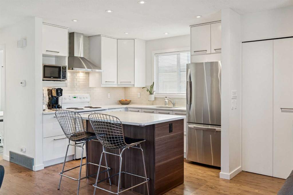Beautifully and fully RENOVATED single-family detached bi-level home—perfect for first-time buyers and investors. This home has undergone extensive updates, resulting in modern finishes and thoughtfully designed living spaces throughout. The main level offers a bright and open living and dining area, 2 spacious bedrooms with walk-in closets, a full bathroom (with a heated floor), and durable LUXURY VINYL PLANK flooring. The NEWER KITCHEN is a standout, featuring crisp white cabinetry, STAINLESS-STEEL APPLIANCES, QUARTZ COUNTERTOPS, a sleek QUARTZ ISLAND, UNDER-CABINET LIGHTING, and a NEWER FRIDGE and RANGE HOOD. The RENOVATED BASEMENT is bright and welcoming with 2 windows and LUXURY VINYL PLANK flooring. It includes a large recreation area (with the option to easily convert part of the space back into a 3rd bedroom), a full bathroom (with a heated floor), laundry area, ample storage, and a KITCHENETTE—perfect for guests or extended family. Additional upgrades include NEWER BATHROOMS , NEWER SIDING, NEWER WINDOWS and BLINDS throughout, NEWER FURNACE, NEWER LIGHT FIXTURES and the list goes on. Outside, enjoy a huge fenced backyard, a large deck for outdoor gatherings, and a FRONT-ATTACHED GARAGE with DRIVEWAY. Ideally located with bus stops just 2-3 minutes away and close to Co-op, shopping, restaurants, Saddletowne C-Train Station, Genesis/YMCA Centre, schools, parks and playgrounds and all other amenities. A great value and a must-see home that truly stands out!