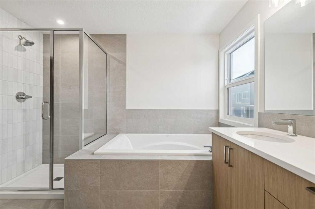 This Quick Possession Cedarglen Homes Showhome model boasts: all the luxury designs of our showhome in a brand-new space waiting for its rightful owner. This home was designed for family living: four spacious upper floor bedrooms with a central bonus room separating the primary from the kids as a nice sound buffer and privacy for the owner's bedroom. The ensuite boasts a tile shower and glass surround with a soaker tub, creating an intimate oasis one would expect from a visit to the spa, and double vanities to keep order in a space that requires it. The kitchen is a sight to behold, beating as the heart of the home with an island meant for entertaining, replete with two-sided extended eating ledges, and large windows and a patio door to the rear deck and BBQ gasline promising endless summer feasts and lounging. The interior selections are what separate this home from the chaff. On top of the incredible upgrades in this home, like the spacious kitchen with cabinets tight to the ceiling, a designer electric fireplace detail that lends the great room its artistic flair, and railing opening up the stairwell to the second floor, the basement is ready for a future potential development, with a side entrance and a 9' ceiling height that will make the future development of the basement as easy as passing your contractor the pre-designed basement layout Cedarglen's already devised. Create new memories in the house of your dreams.