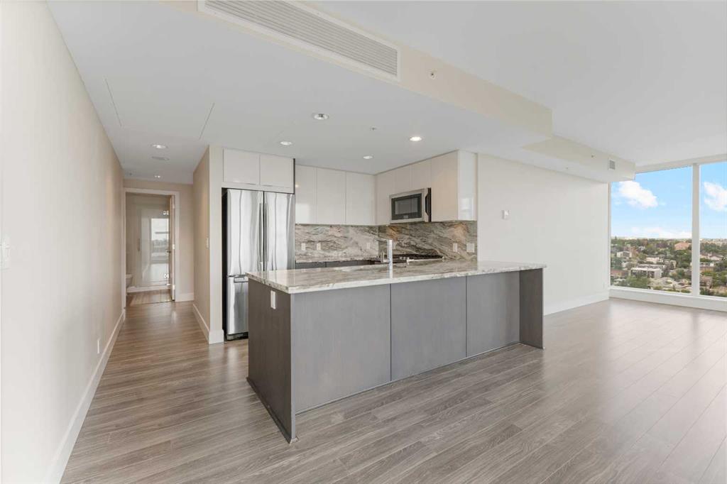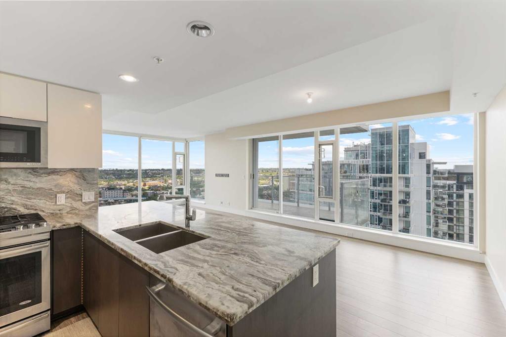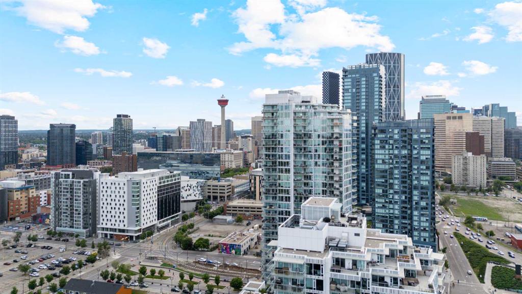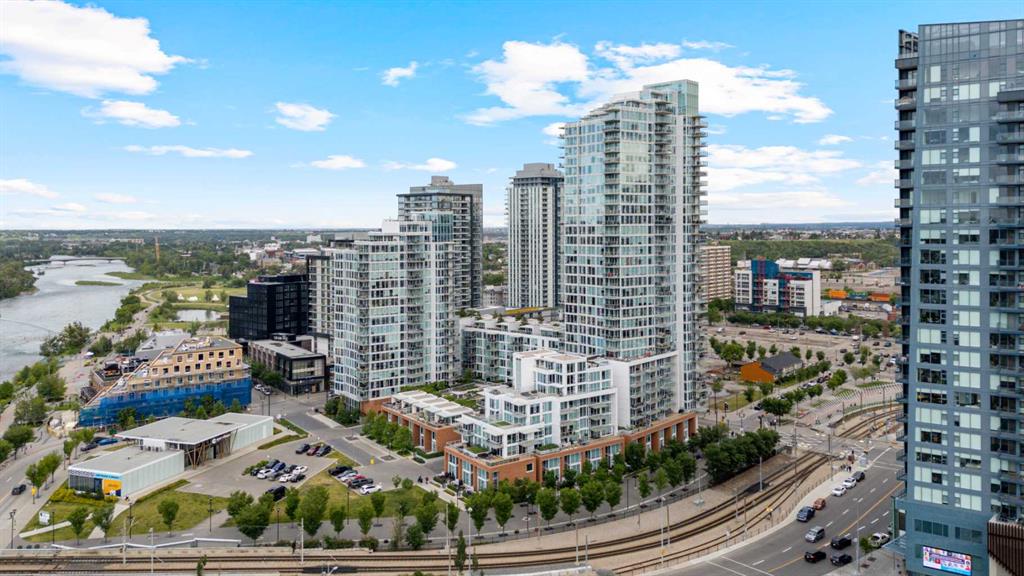 Welcome to your dream urban oasis in the heart of East Village. This stunning 19th-floor, 2-bedroom, 2-bathroom residence showcases breathtaking views of the Bow River and downtown skyline through expansive floor-to-ceiling windows that flood the home with natural light. Sleek laminate flooring throughout enhances the modern, open feel of the space.