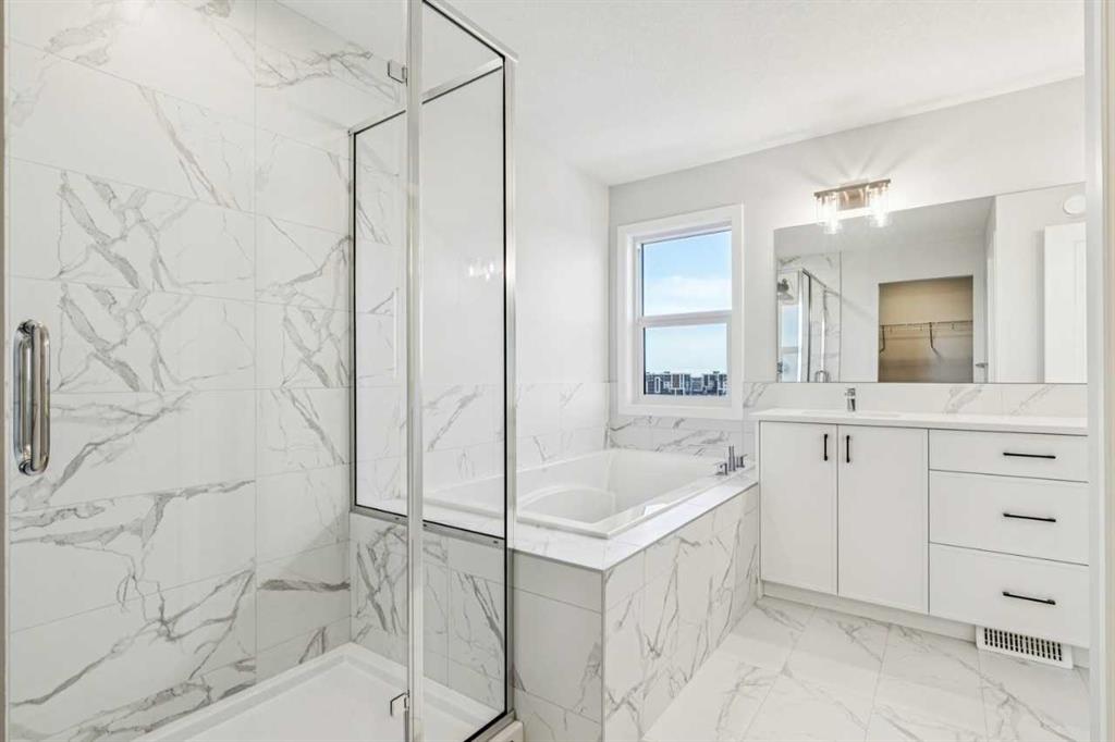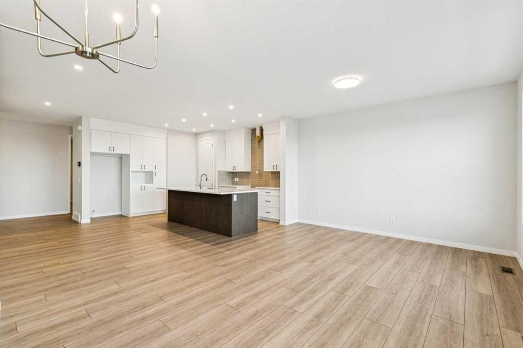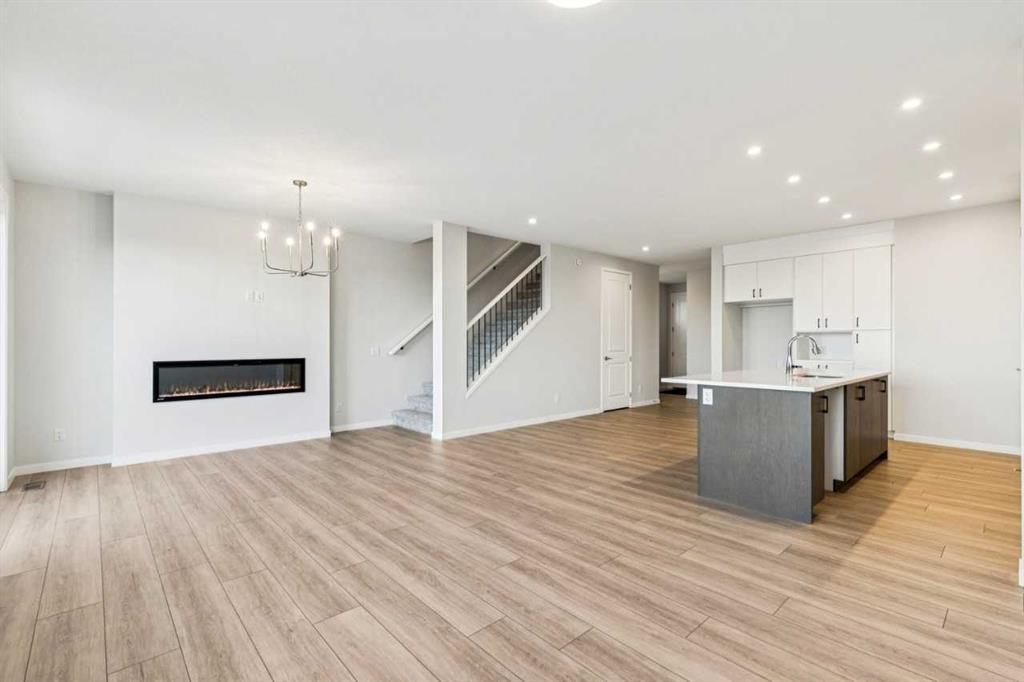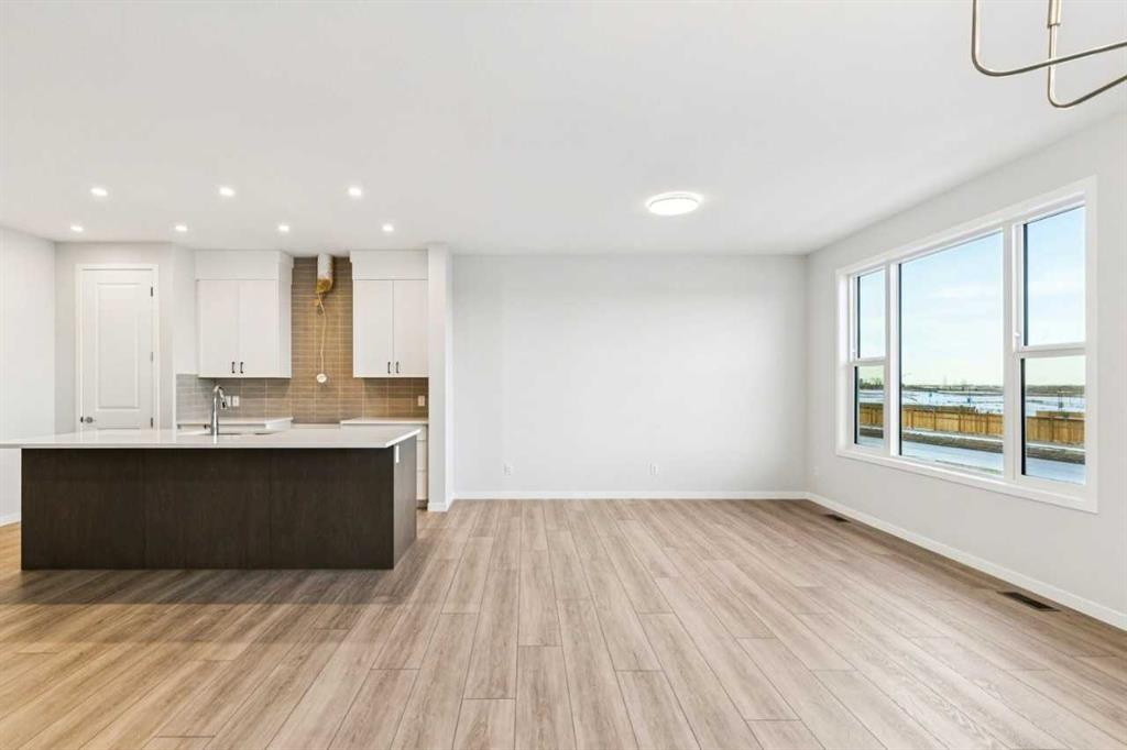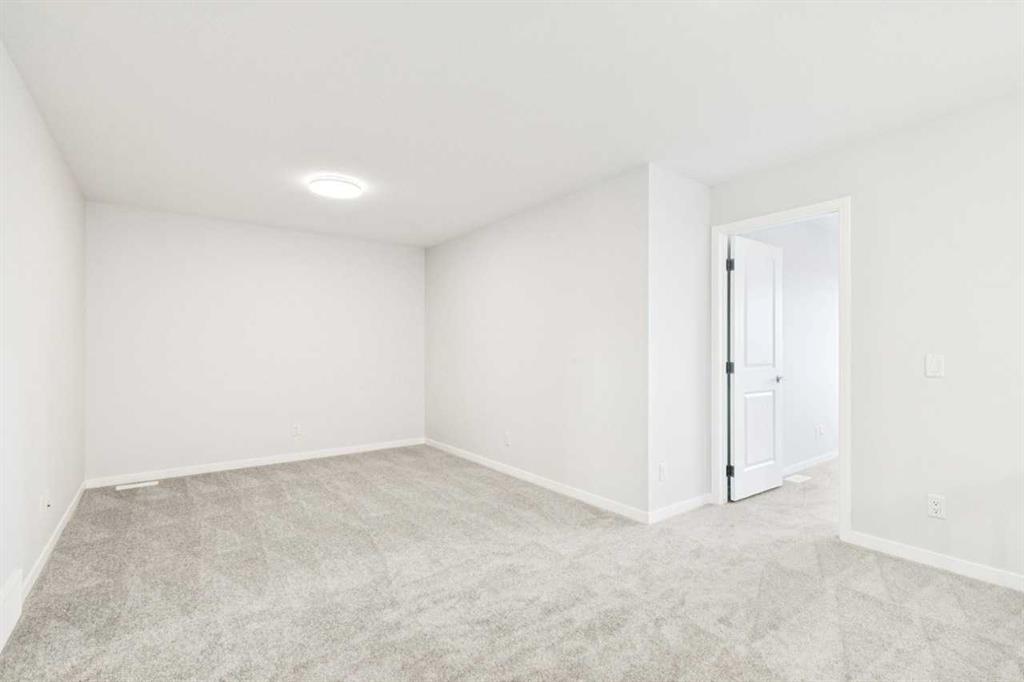 This walkout home offers a bright, practical layout designed for everyday living and entertaining. The main floor includes a front flex room and an open concept living, dining, and kitchen area anchored by a fireplace. The kitchen features tight to ceiling cabinetry and connects seamlessly to the main living space. Added windows throughout enhance natural light, and 8 ft main floor doors add to the open feel. Upstairs, four bedrooms are arranged around a central bonus room with light from the stairwell window. The primary bedroom includes an upgraded five-piece ensuite with a soaker tub, tiled shower, dual sinks, and a walk in closet. Additional upgrades include railing throughout the home, a large walkout deck with stairs to the backyard, appliance allowance to select appliances that fit your lifestyle, and a tankless water heater. The home sits on a 108 ft long lot with no neighbours behind, providing added privacy and space. The walkout basement is roughed in for future potential development, offering long term flexibility. Never lived in and comes with full new home warranty coverage, this property represents a rare final phase opportunity in Belmont.
