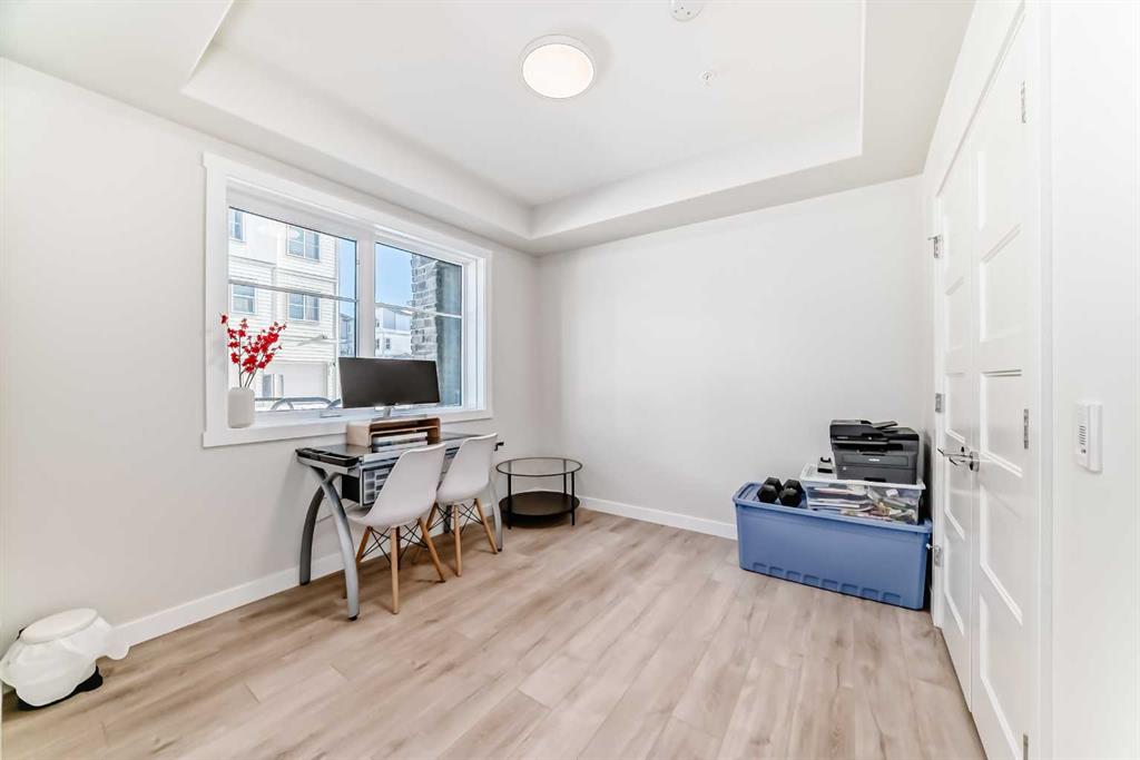 Welcome to Unit 2111, 2117 81 Street SW—a brand-new, 2-bedroom, 1-bath condo offering sophisticated low-rise living in Springbank Hill, one of Calgary’s most sought-after southwest communities. The unit features an efficient, open-concept layout filled with natural light and finished with wide-plank luxury vinyl flooring, designer tilework, and elevated details throughout. The contemporary kitchen is designed to impress with quartz countertops, cabinetry, a central eating bar, and a sleek stainless steel appliance package—perfect for everyday life and effortless entertaining. The bright living area opens to a private oversized patio, ideal for morning coffee or unwinding after work, all just steps from ravine-side pathways and scenic walking trails. Additional highlights include in-suite laundry, a built-in A/C unit, titled heated underground parking. Built by Cove Properties and thoughtfully positioned near Aspen Landing, top schools, dining, and transit options including the 69 Street CTrain Station—plus quick access downtown and easy weekend escapes toward the Canadian Rockies. A rare opportunity to own a luxury, air-conditioned home in a premium southwest location—book your private showing today.